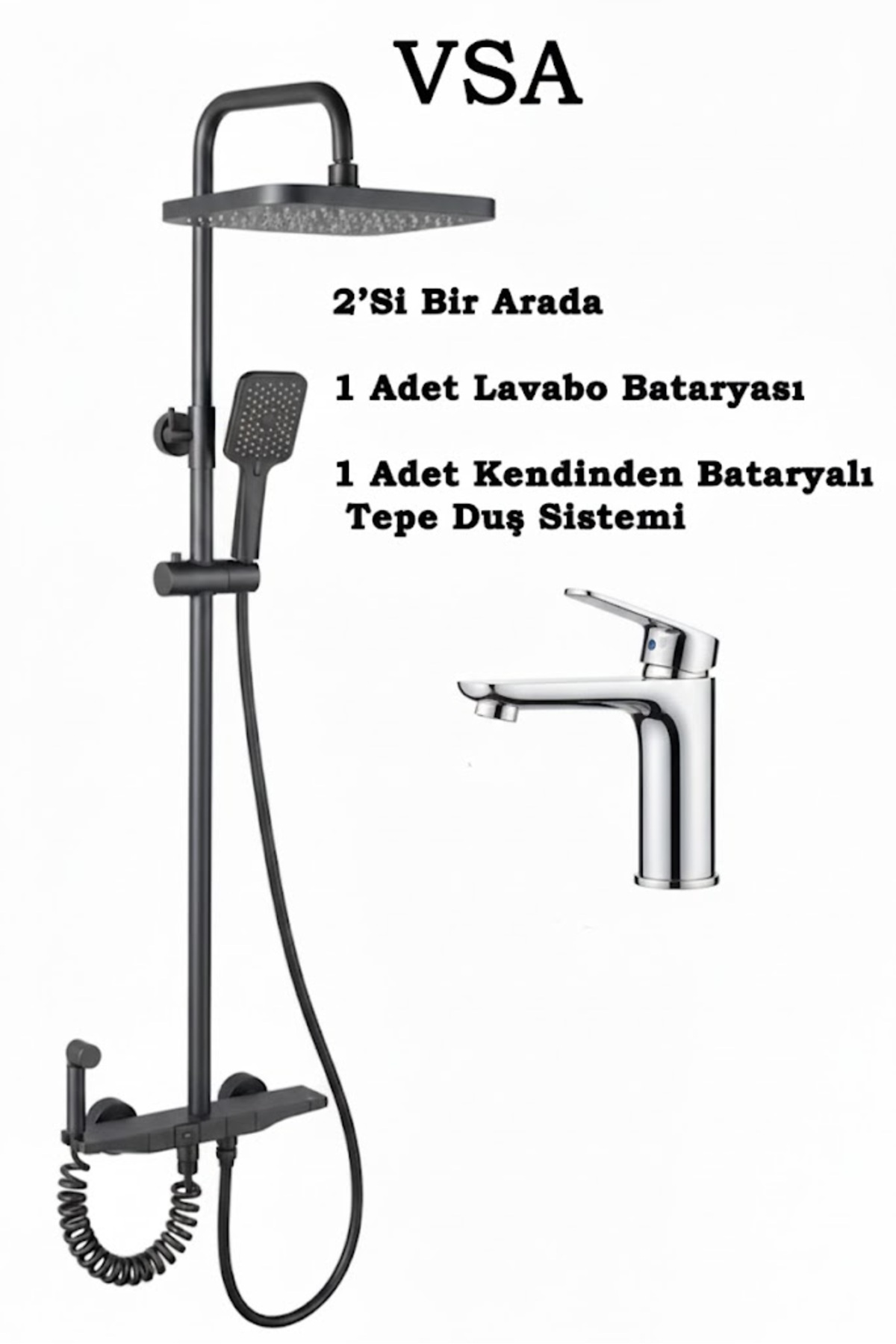 Yeni Mars Antrasit Tuşlu Tepe Duş Yağmurlama Banyo Robot Seti Ve Krom Lavabo Çift Girişli Batarya