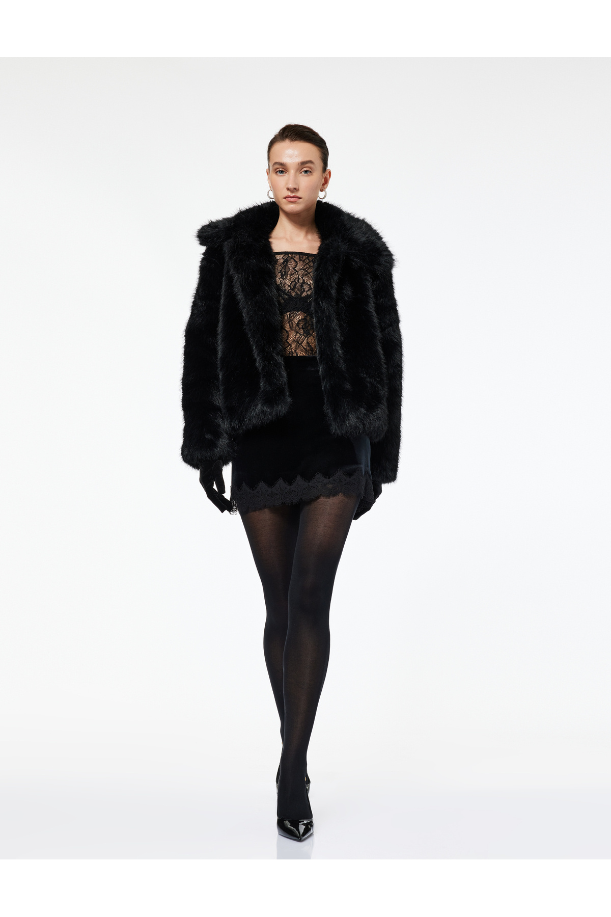 Dantel Detaylı Kadife Mini Etek