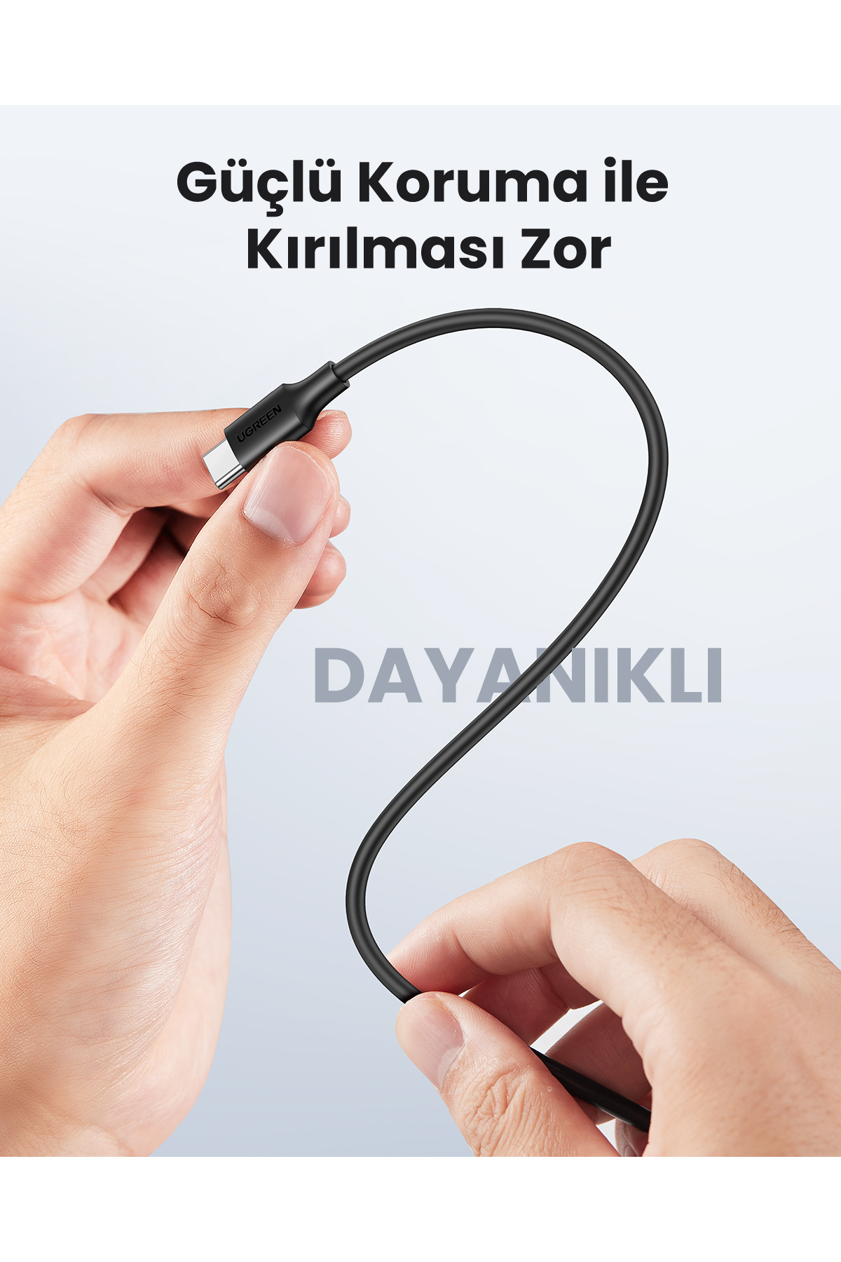 USB-C 60W 3A QC PD Hızlı Şarj Kablosu, 0,5 Metre, Siyah, 50996