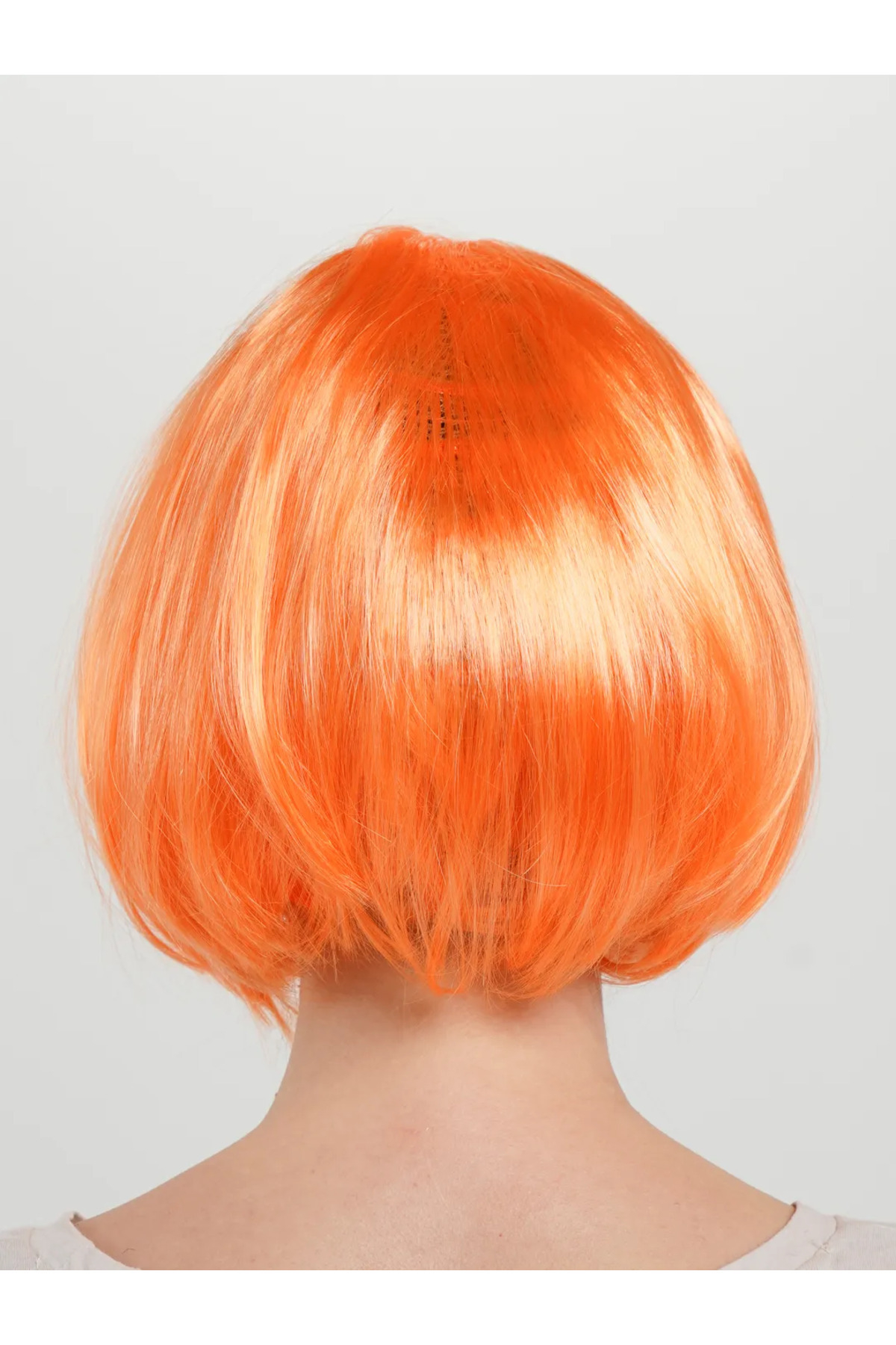 Neon Turuncu Renk Açık Turuncu Küt Parti Peruğu Kısa Takma Saç (5314)