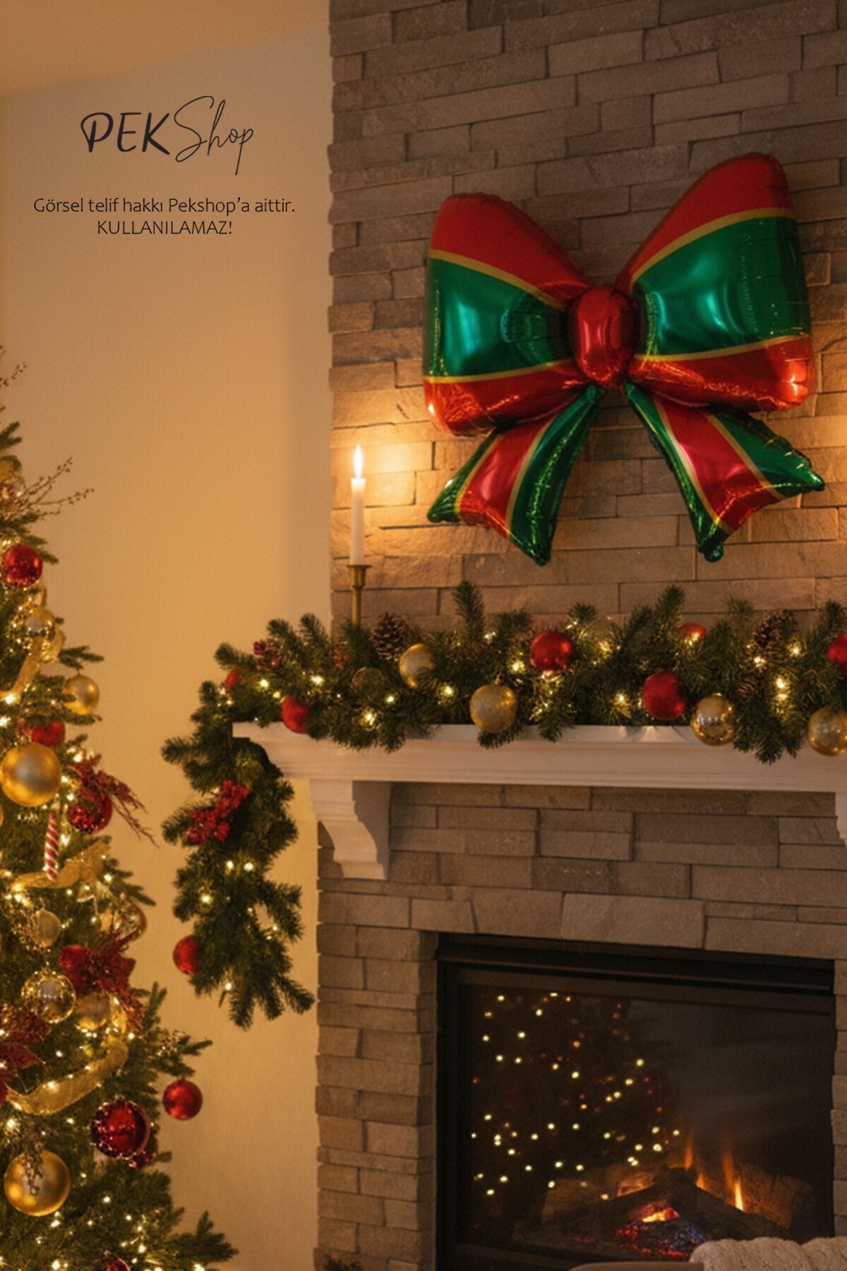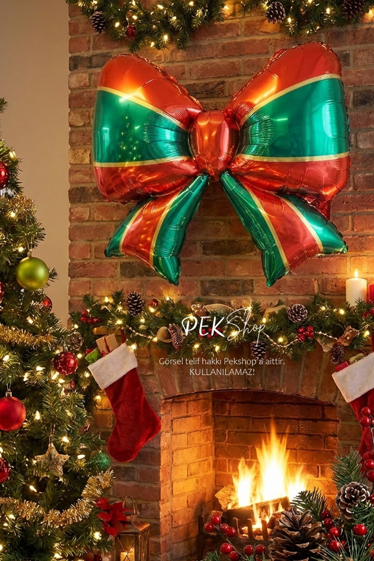 Kırmızı Yeşil Fiyonk Folyo Balon Kurdele Yılbaşı Süsleme BalonuFolyo balon boyutu 70x50 cm.