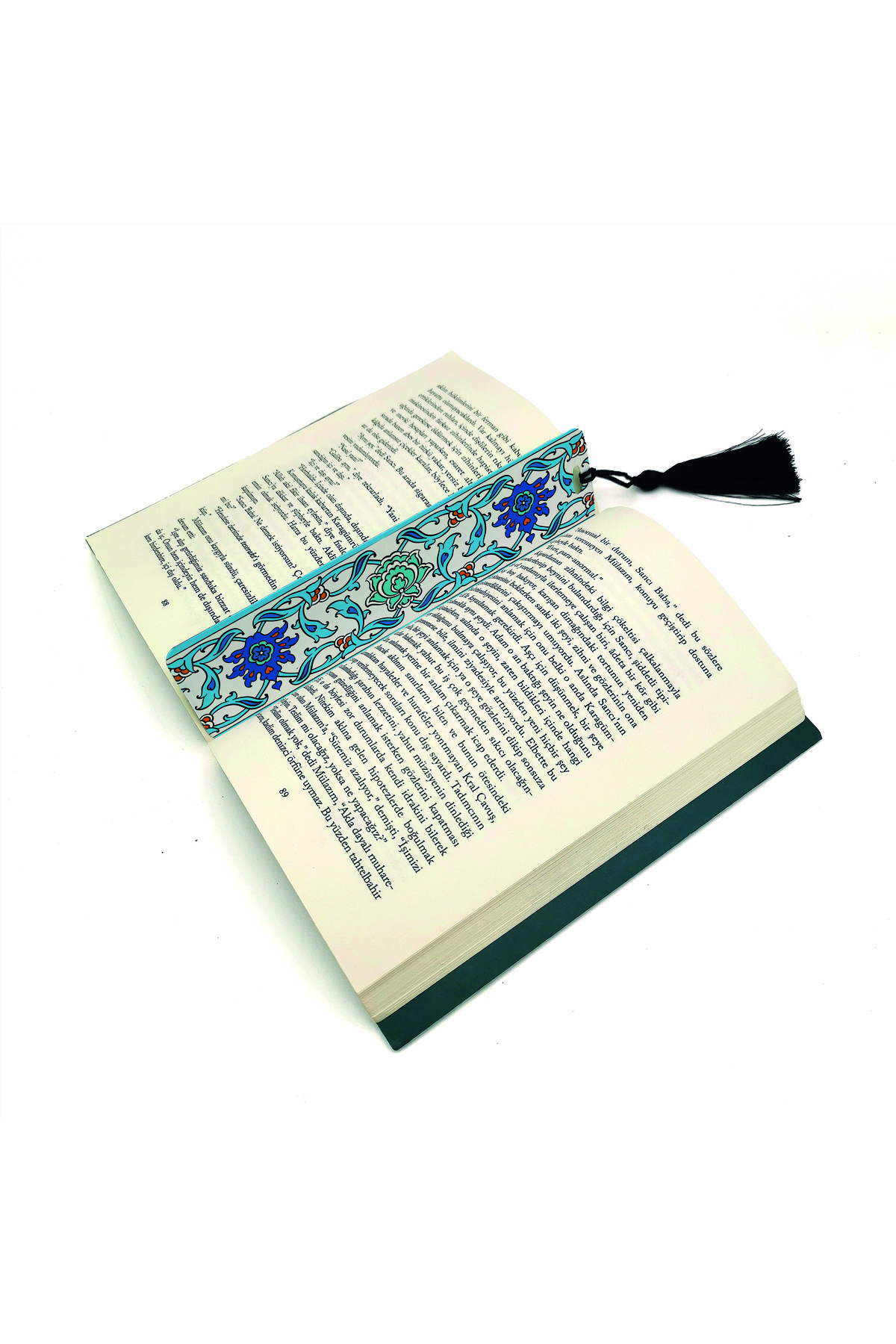 Turkuaz Çiçekli Çini Deseni Baskılı Kitap Ayracı 19cm x 5cm | AG-TÇiçek2