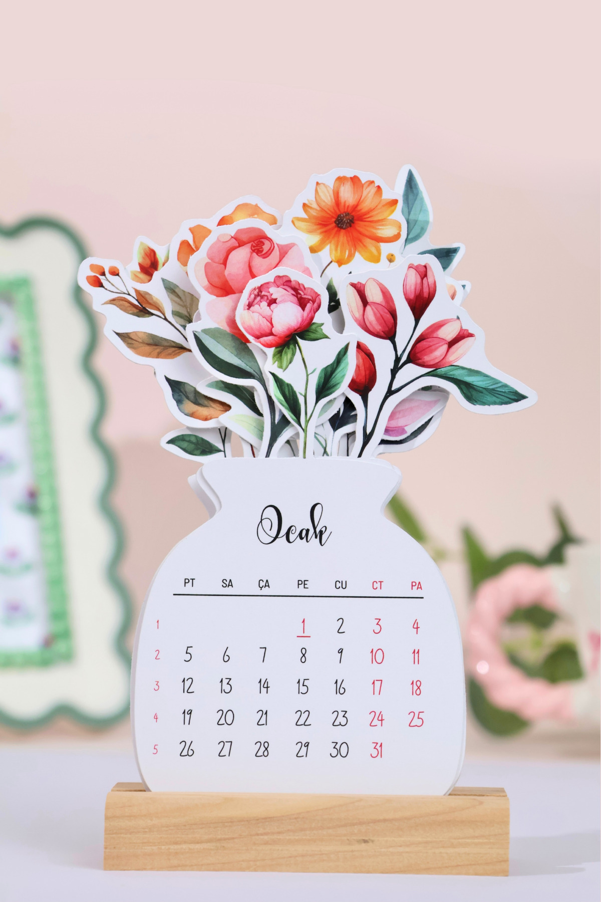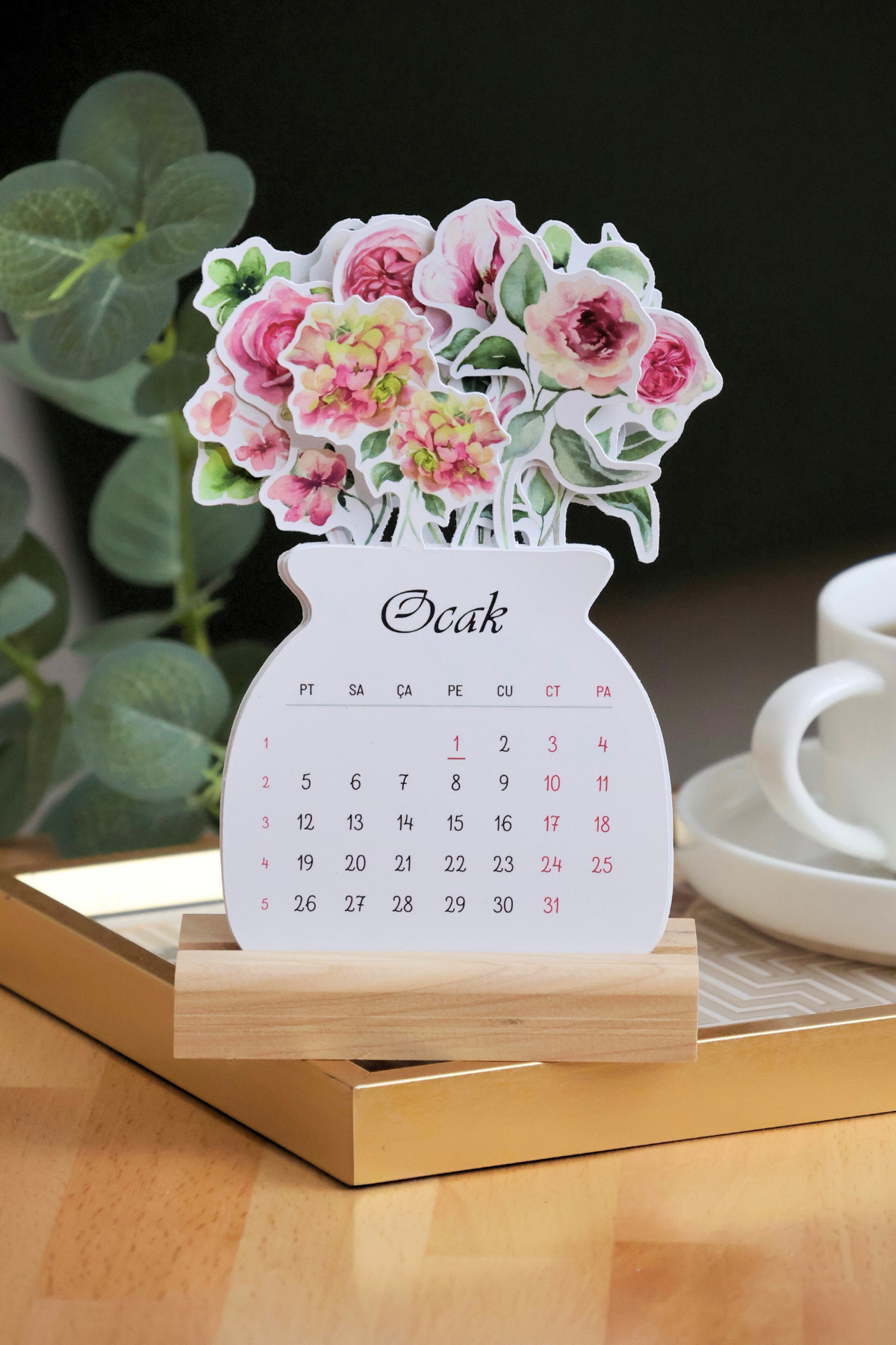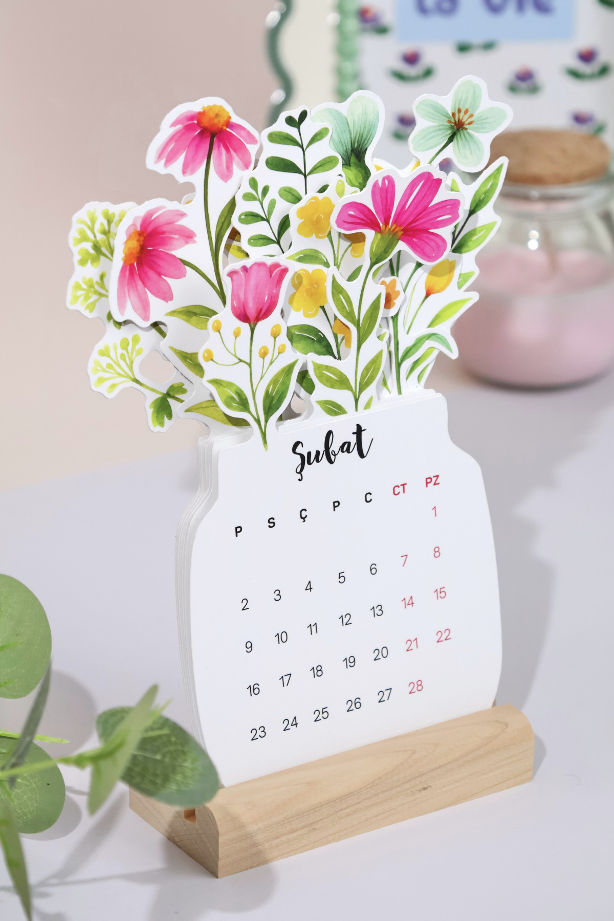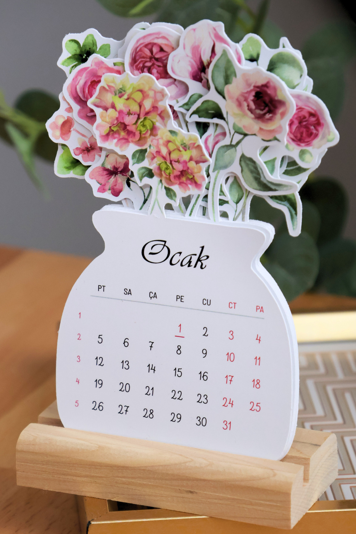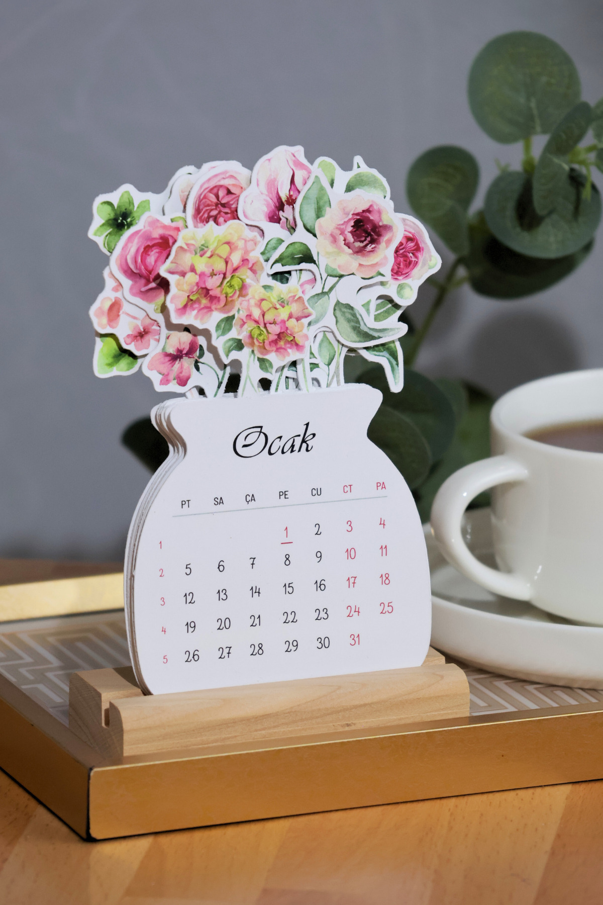 2026 Çiçekli Masa Takvimi 350 gr kalın kağıda basılmıştır.