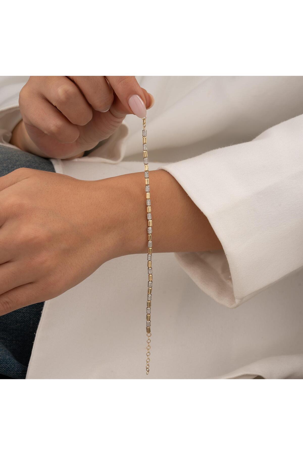Beyaz Sarı Geçişli 14 Ayar Altın Bileklik