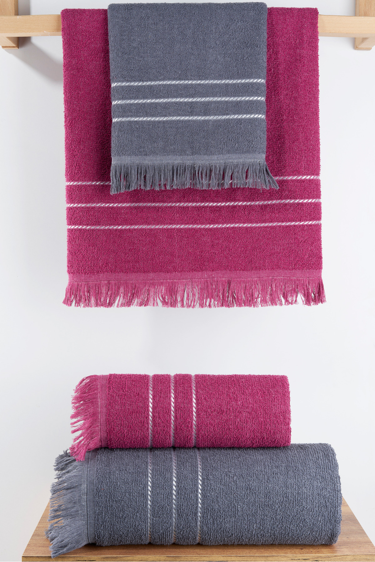 4’lü Pamuklu Banyo Havlu Seti Hamam Takımı, El, Yüz, Baş ve Beden, 2 Adet 40x80cm + 2 Adet 70x140cm