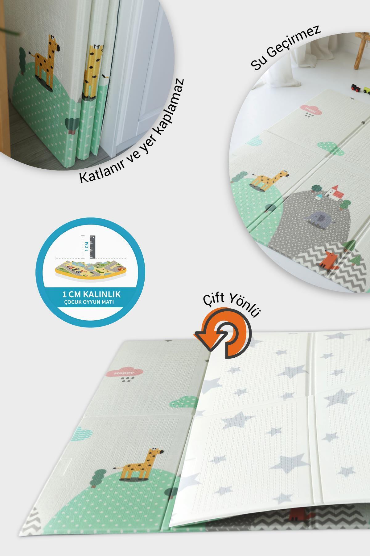Oyun Matı, 200x130x1 cm Çift Taraflı Katlanır Oyun Halısı