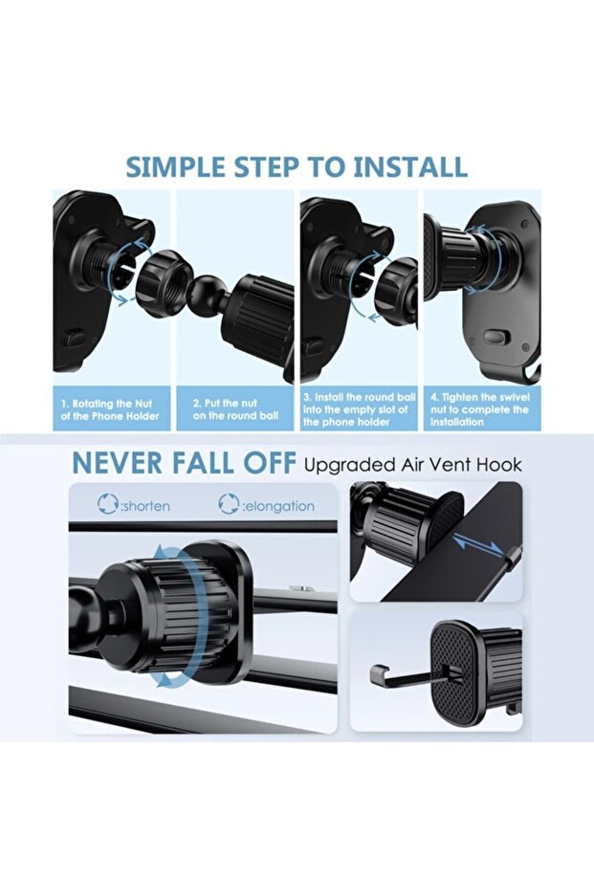 360 Dönebilen Kancalı Araç İçi Parlak Premium Telefon Tutucu Havalandırma Araba Telefon Tutacağı