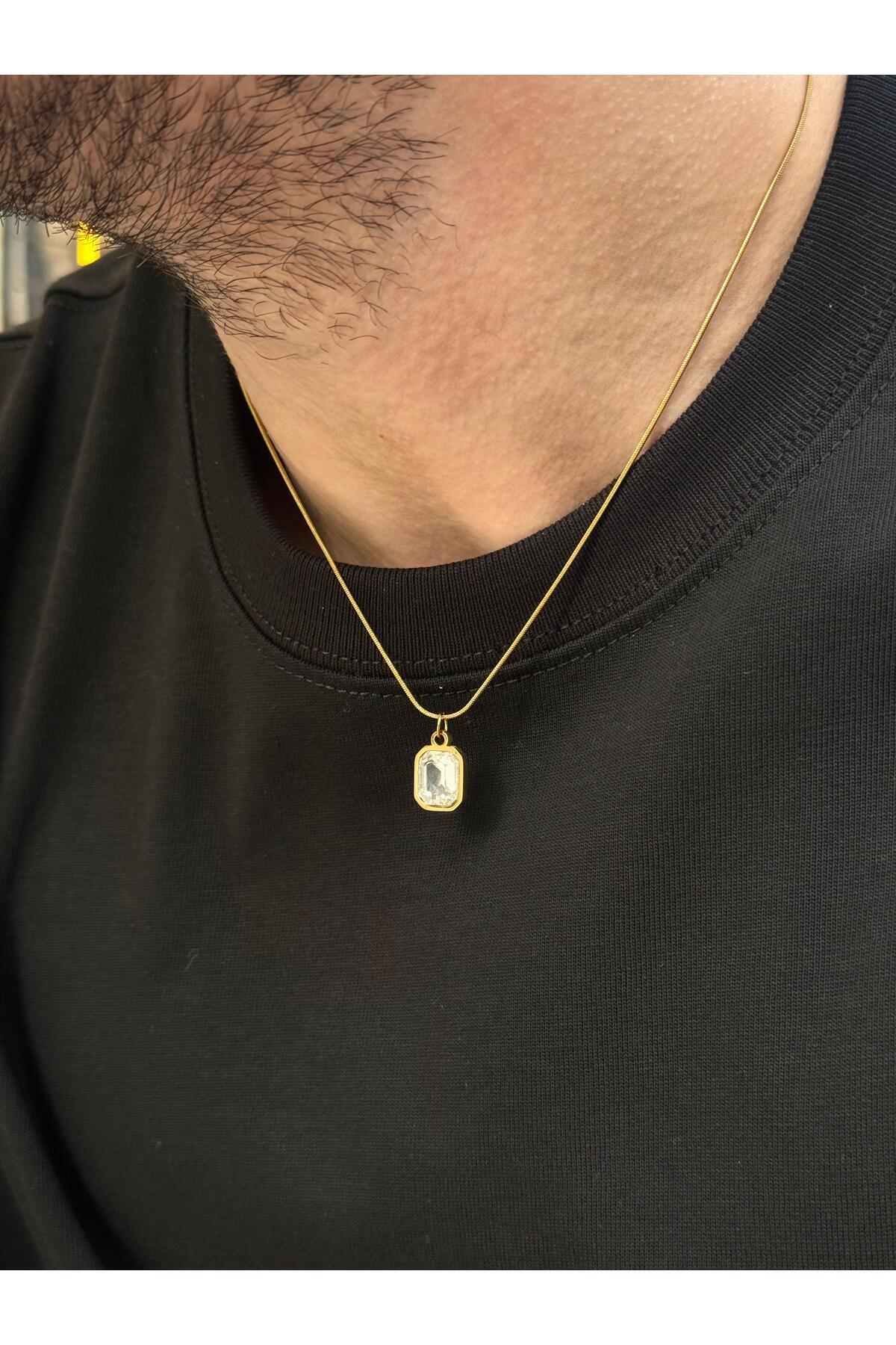 Dayanıklı paslanmaz çelikten üretilmiş altın renk zincirli, parlak zirkon taşlı dikdörtgen kolye ucu toplam 45 cm uzunluğundadır.