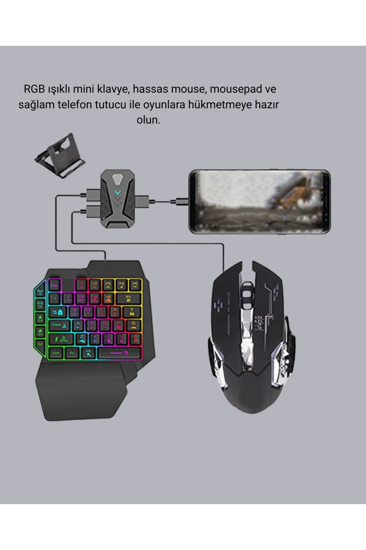 • Set içerisinde bulunan dönüştürücü, RGB mini klavye, yüksek hassasiyetli mouse, geniş yüzeyli mousepad ve güçlü telefon tutucu