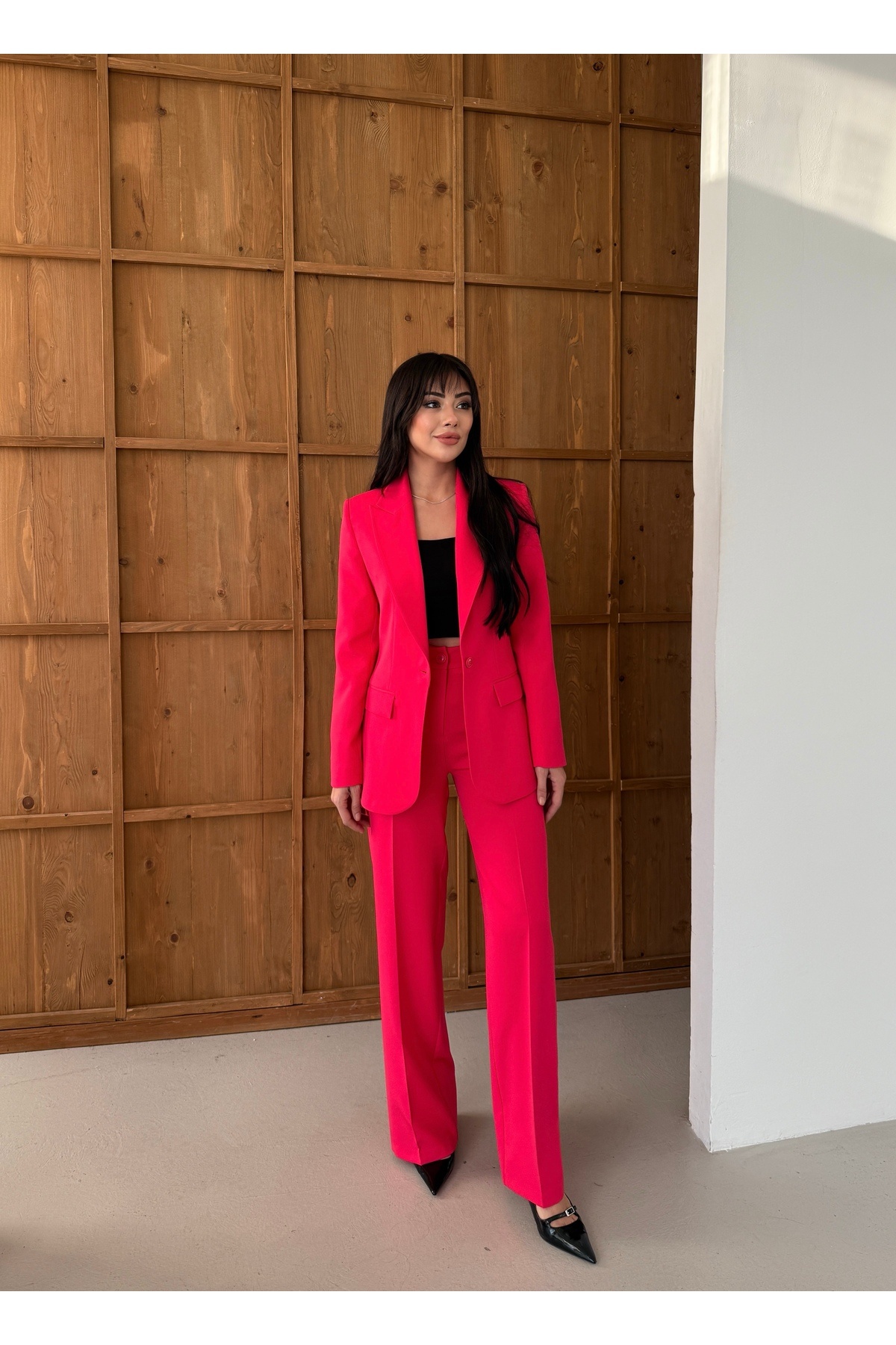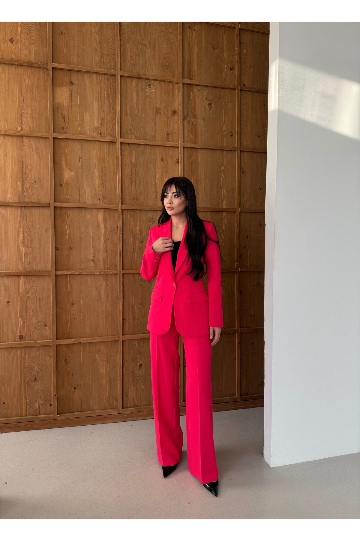 - Tüm sezonlarda rahatlıkla tercih edilebilen Nadrina Lazer Kesim Takım, smart ve ofis ortamları için idealdir.
