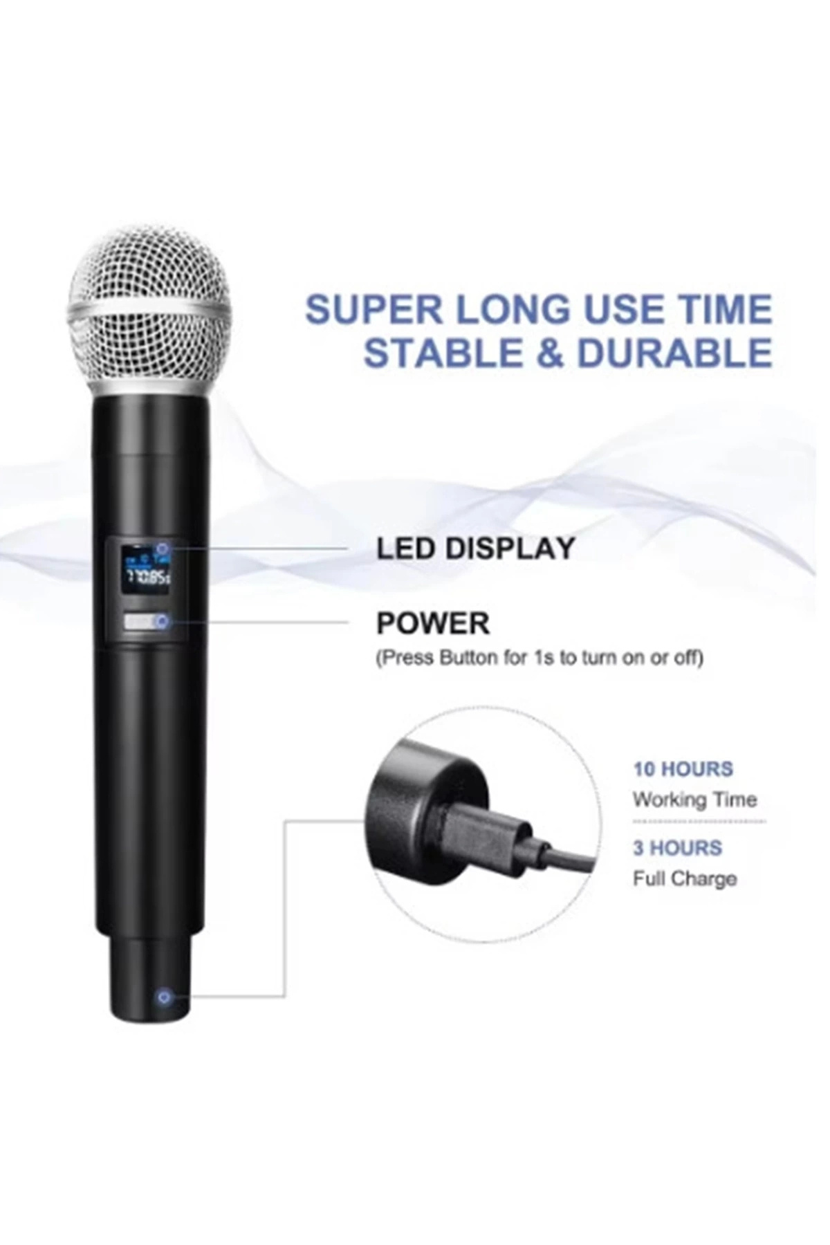 Profesyonel Çiftli Kablosuz Mikrofon Seti Karaoke Şarj Edilebilir 50 Metre Mesafe
