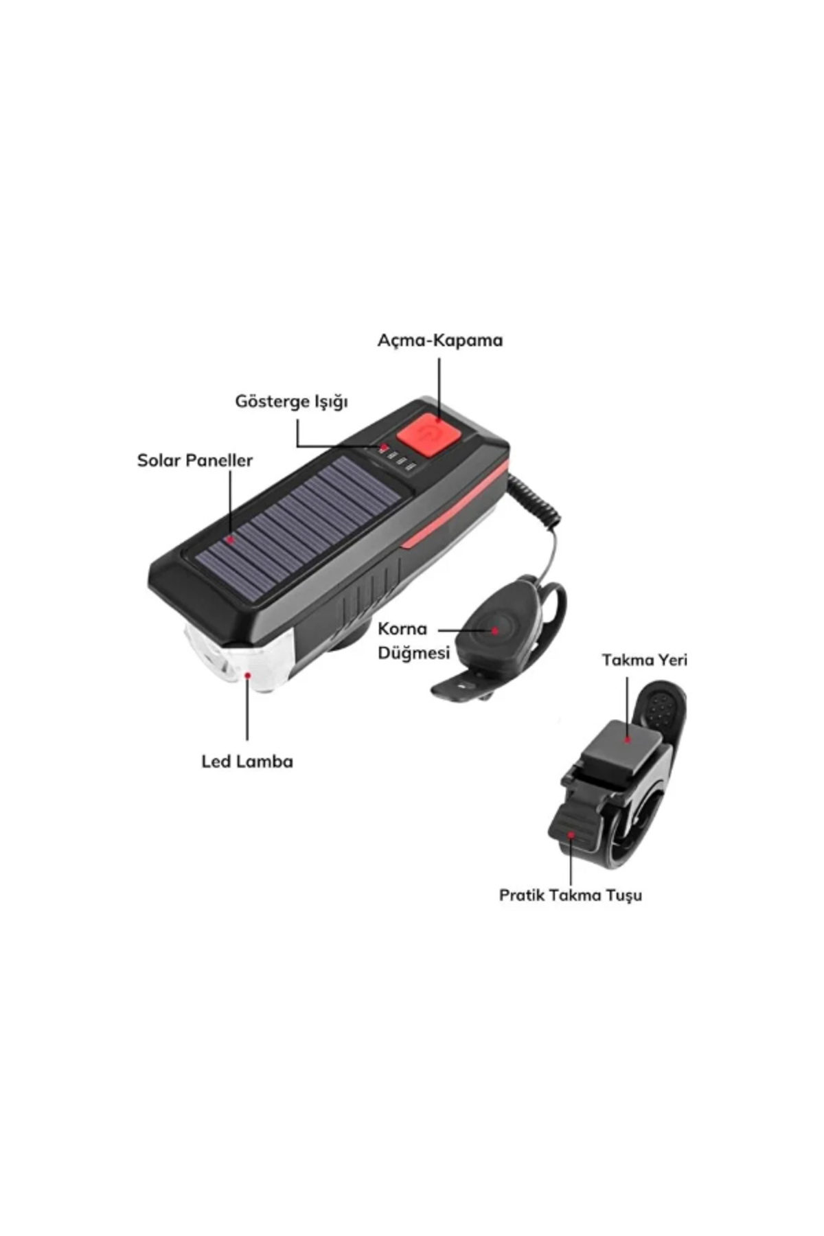 Paket İçeriği 1 adet güneş enerjili bisiklet ışıklı korna