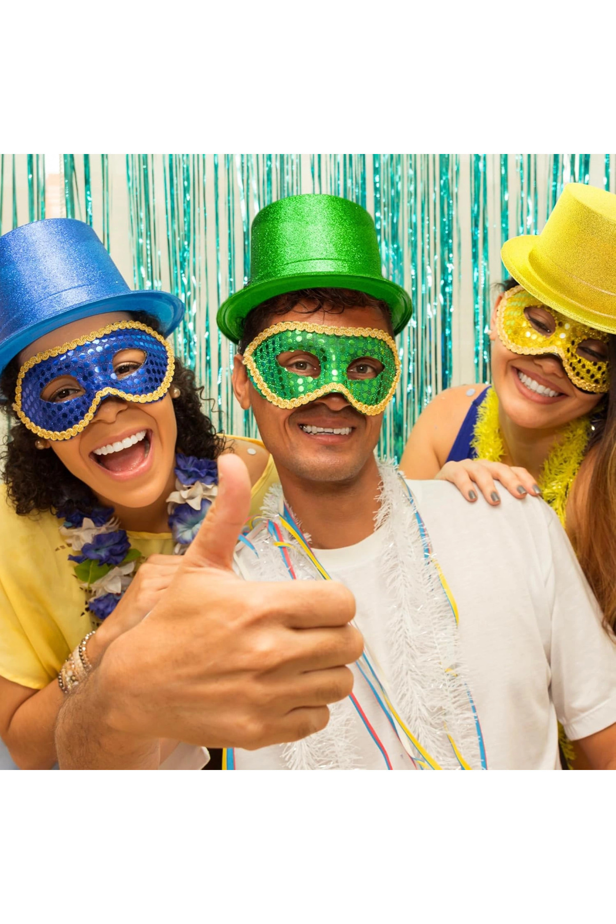 Mavi Renk Parıltılı Simli Fötr Silindir Parti Şapkası