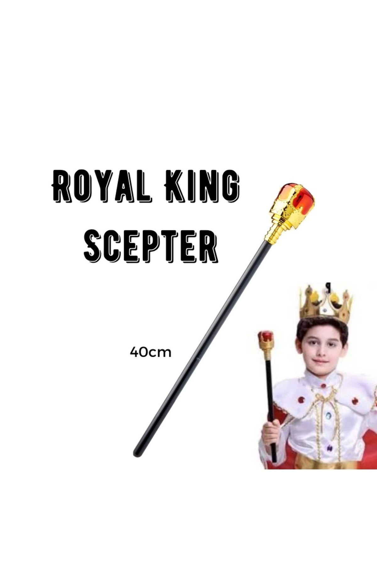 Çocuk Boy Altın Renk Kral Tacı ve Kırmızı Topuzlu Kral Asası