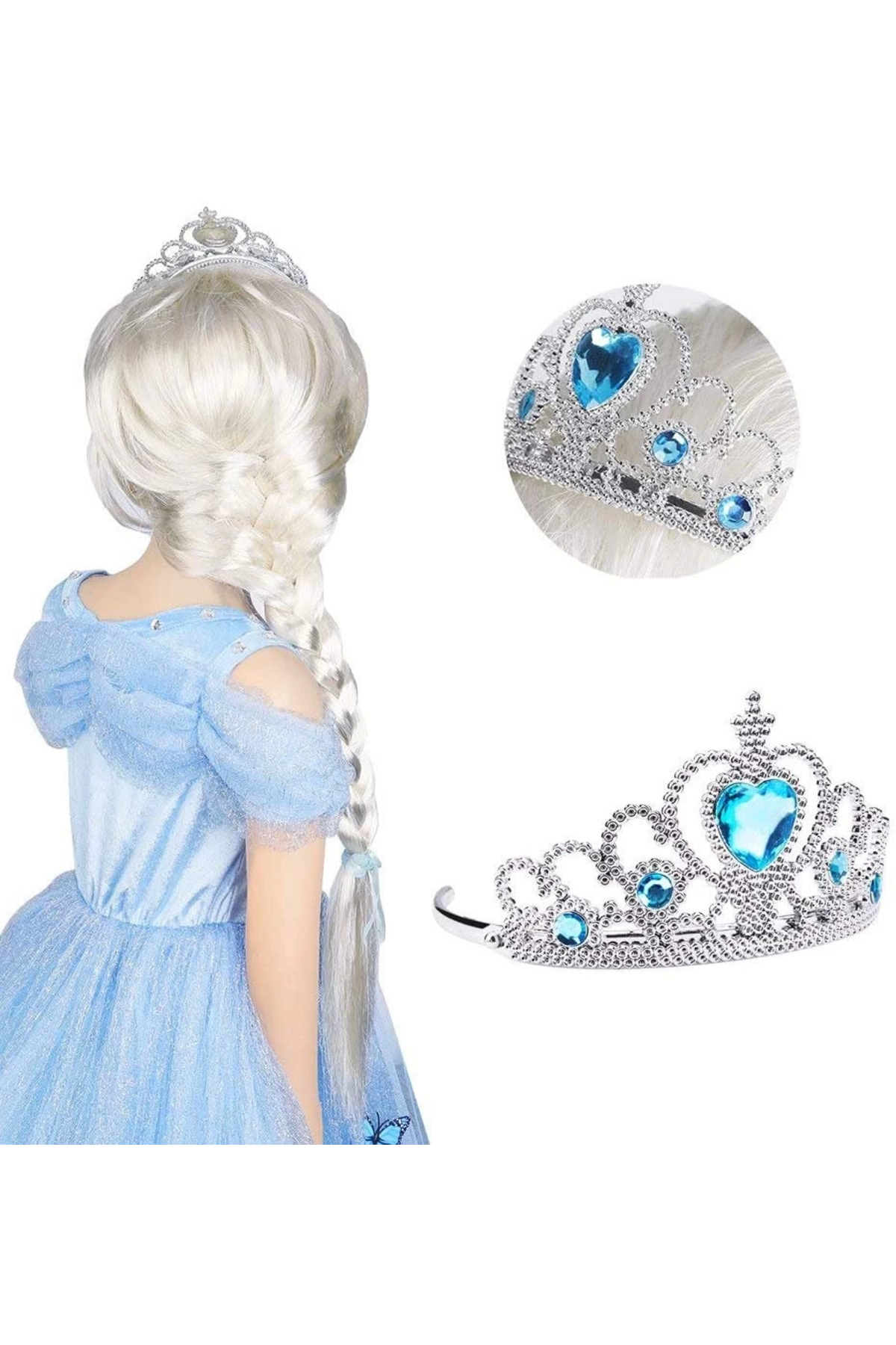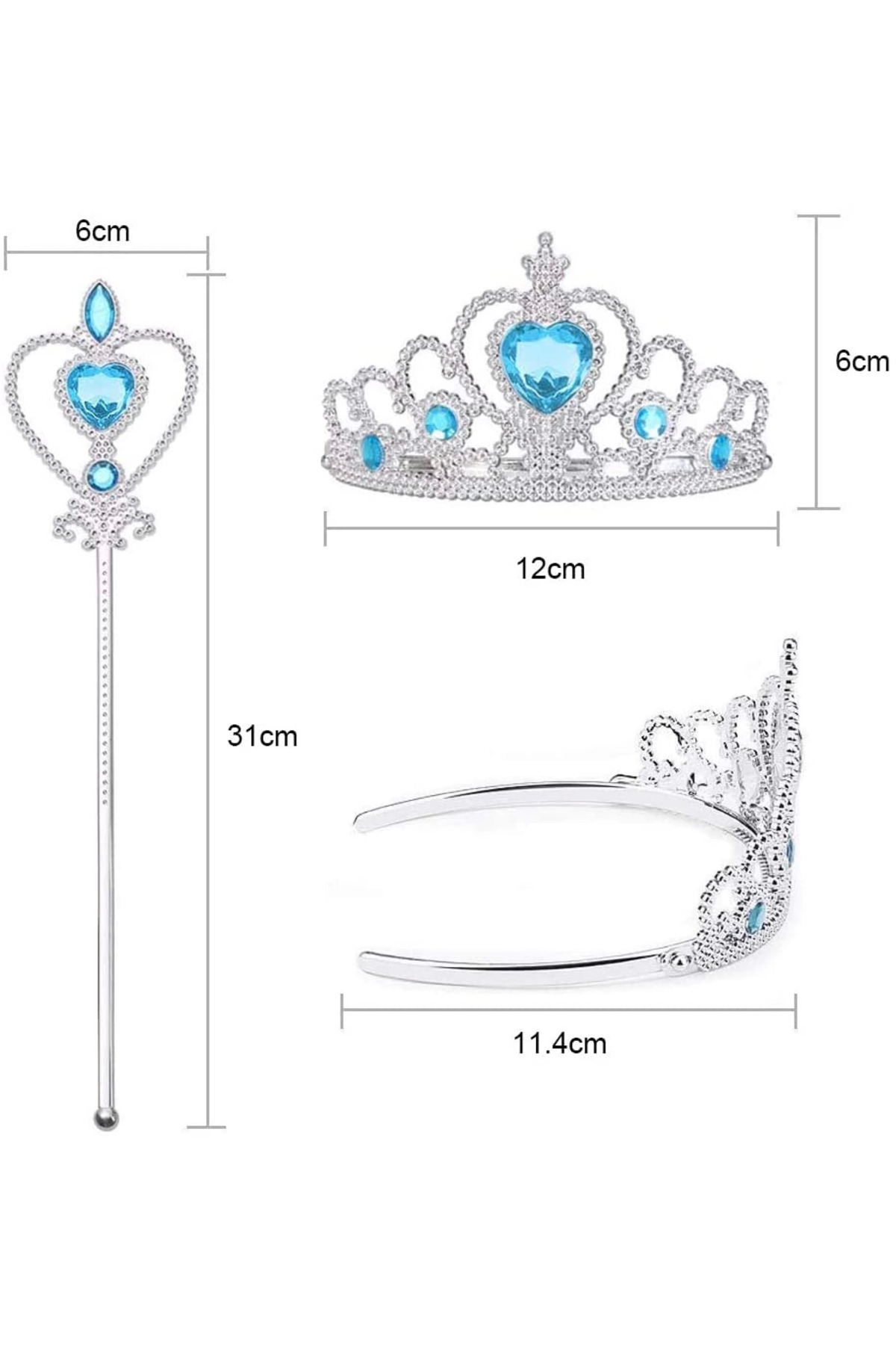 Karlar Ülkesi Elsa Mavi Kalpli Taç ve Mavi Asa Seti Çocuk Boy
