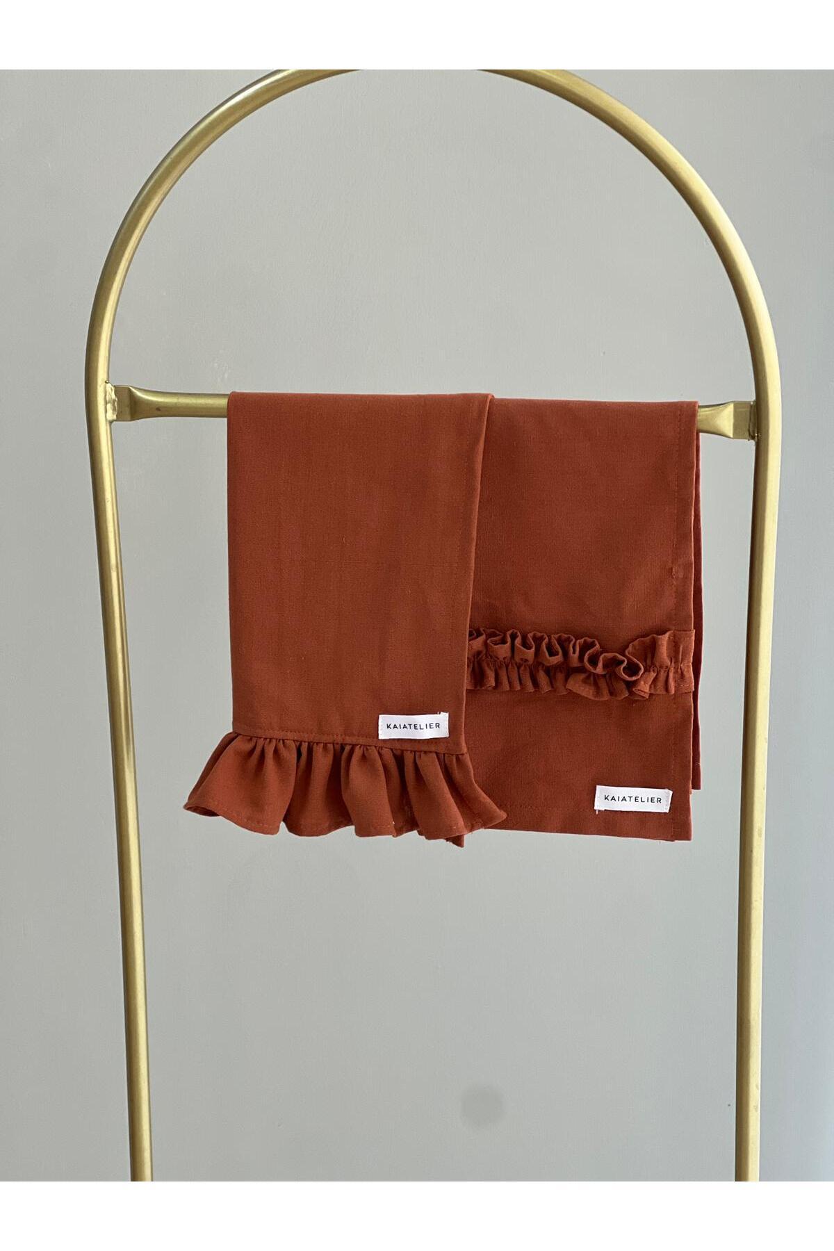 2Li Terra Keten Fırfırlı Fırın Örtüsü / Kurulama Bezi Seti