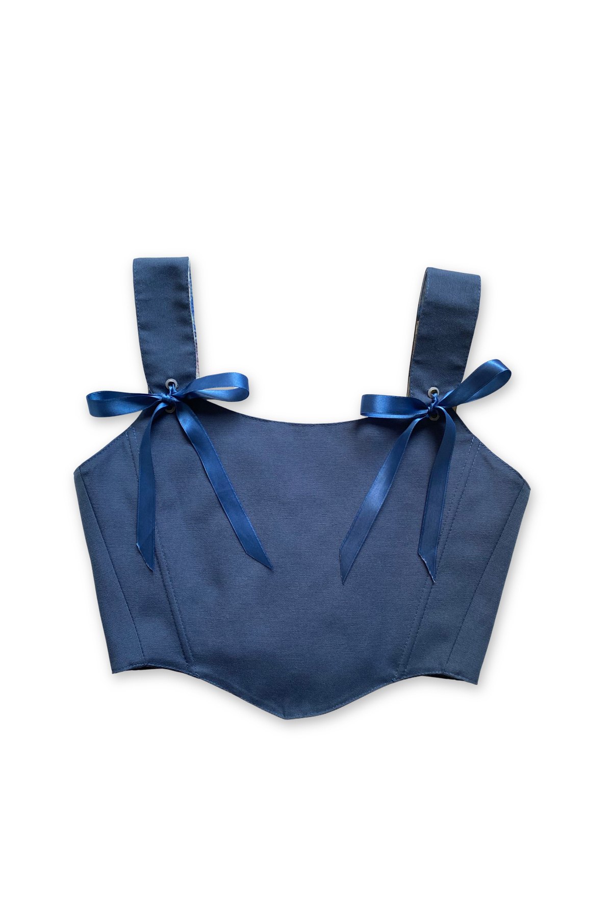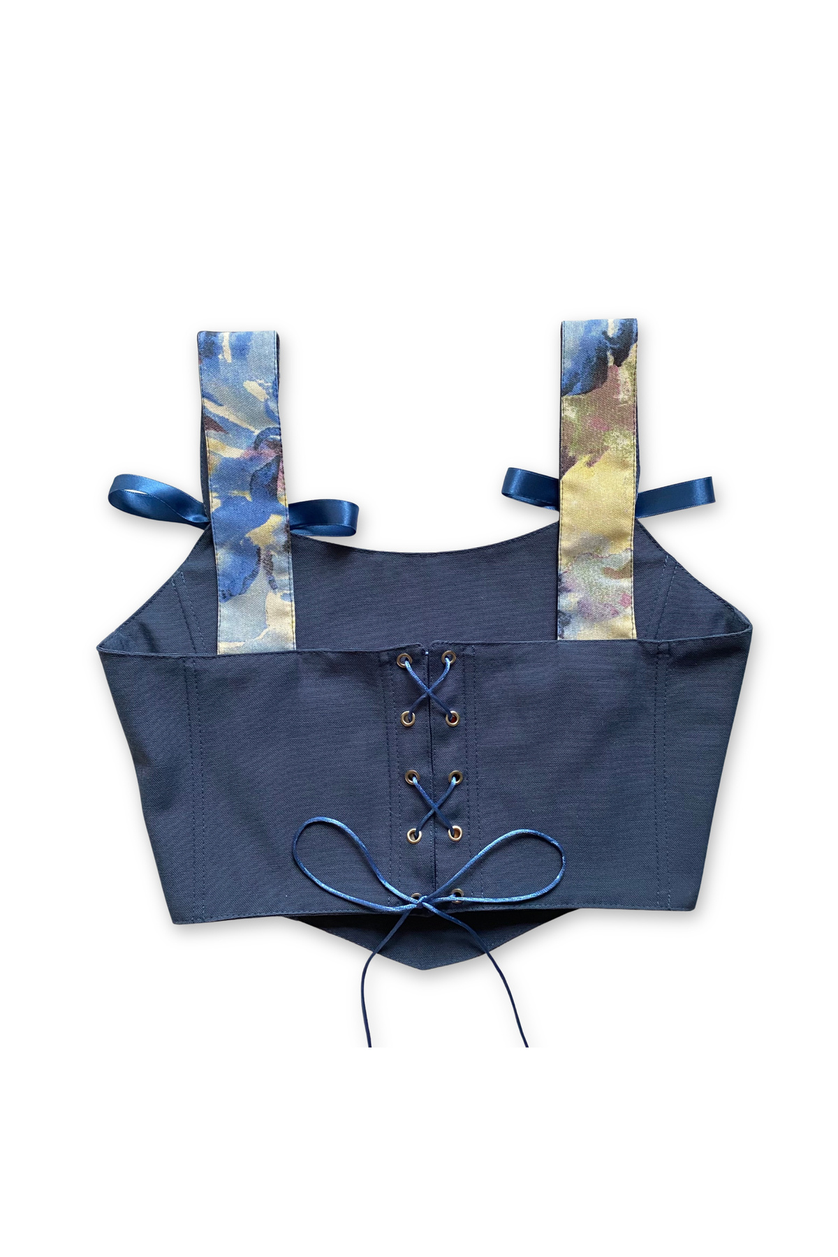 Mavi Çiçek Desenli Çift Taraflı Korse Büstiyer