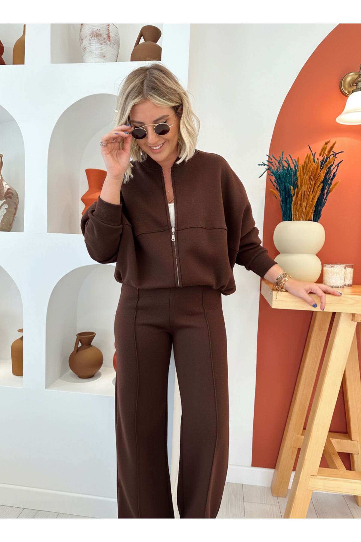- Geniş paça tasarımı ile modern ve rahat bir siluet oluştururken, yüksek bel kesimi vücut hatlarınıza zarif bir şekilde oturur.