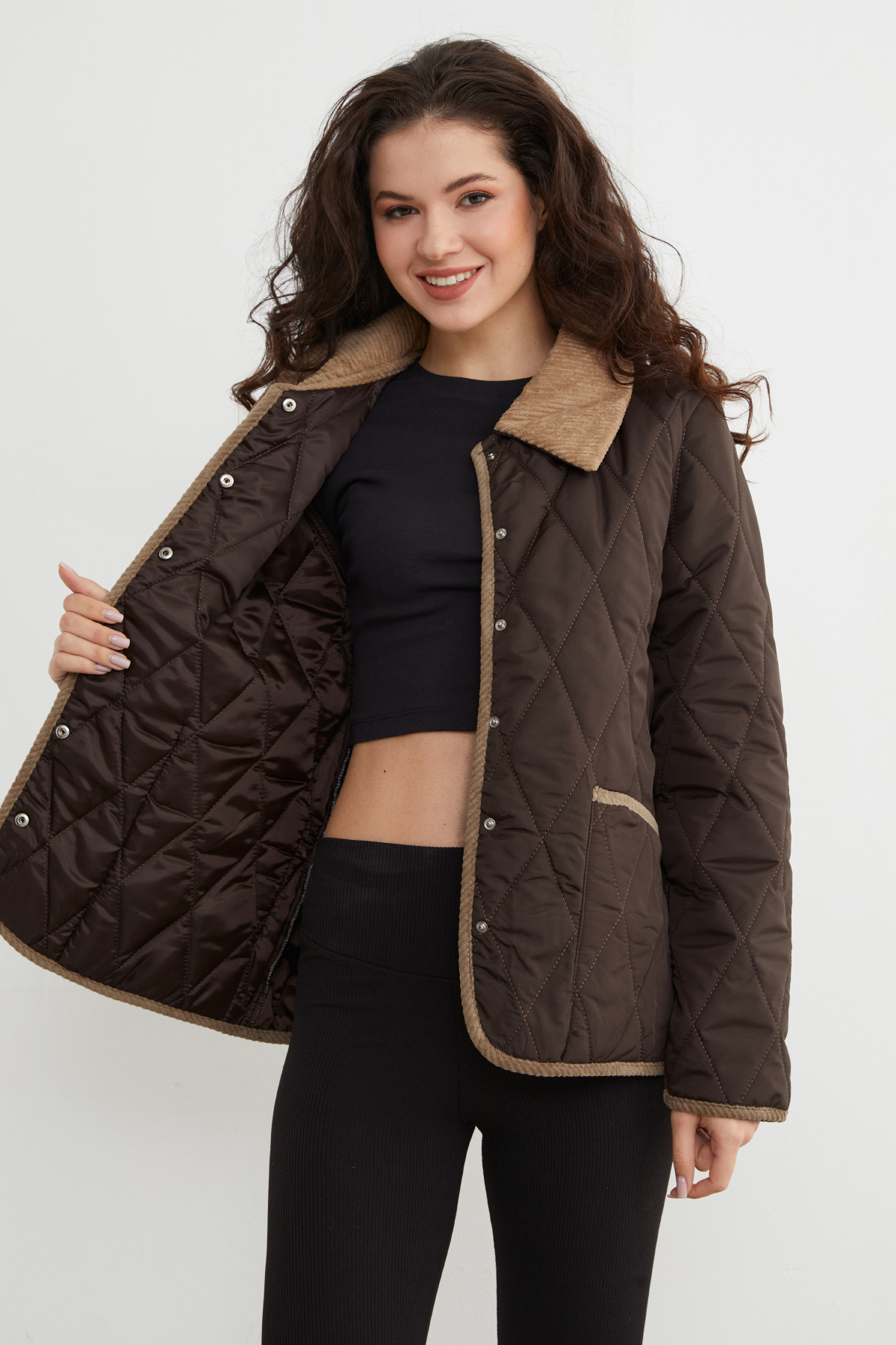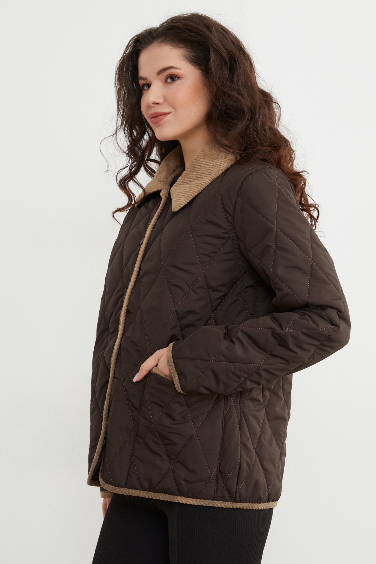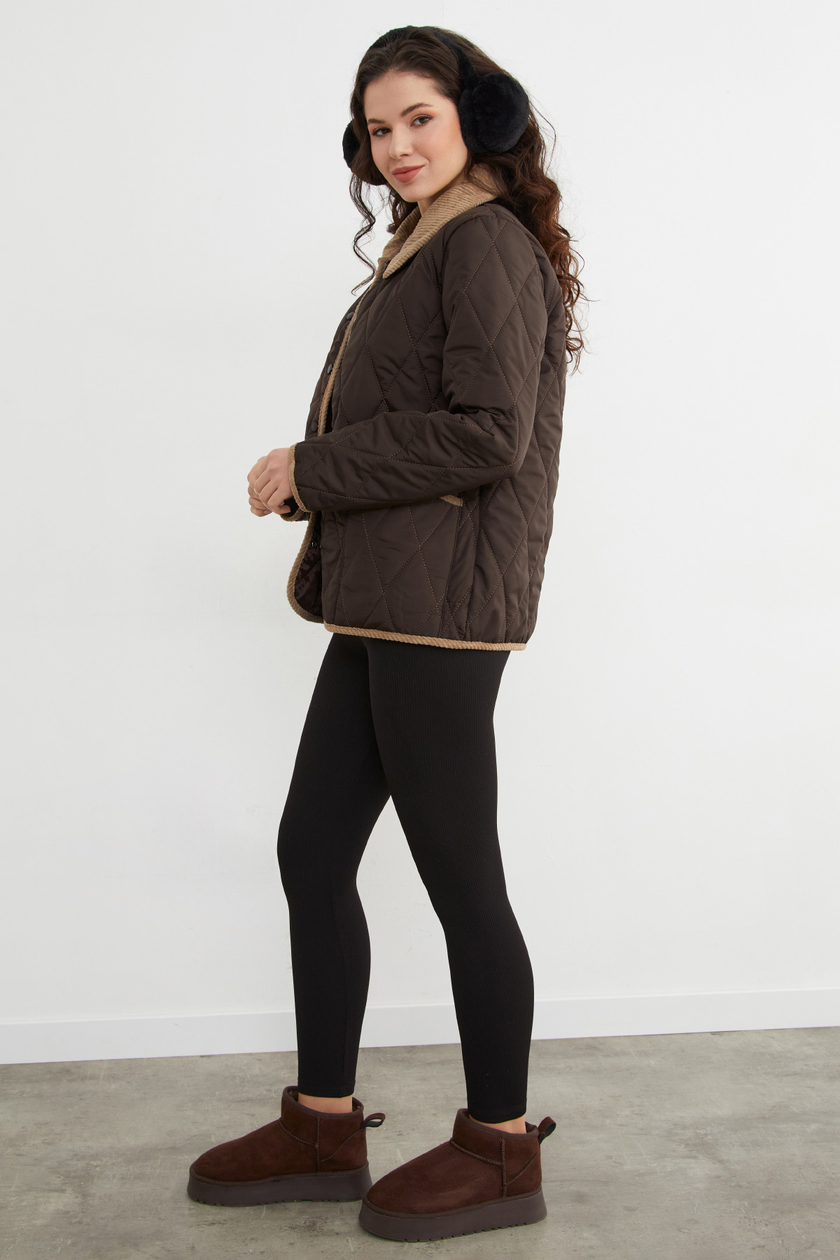 Kadife Detaylı Polo Yaka Kapitone Mont