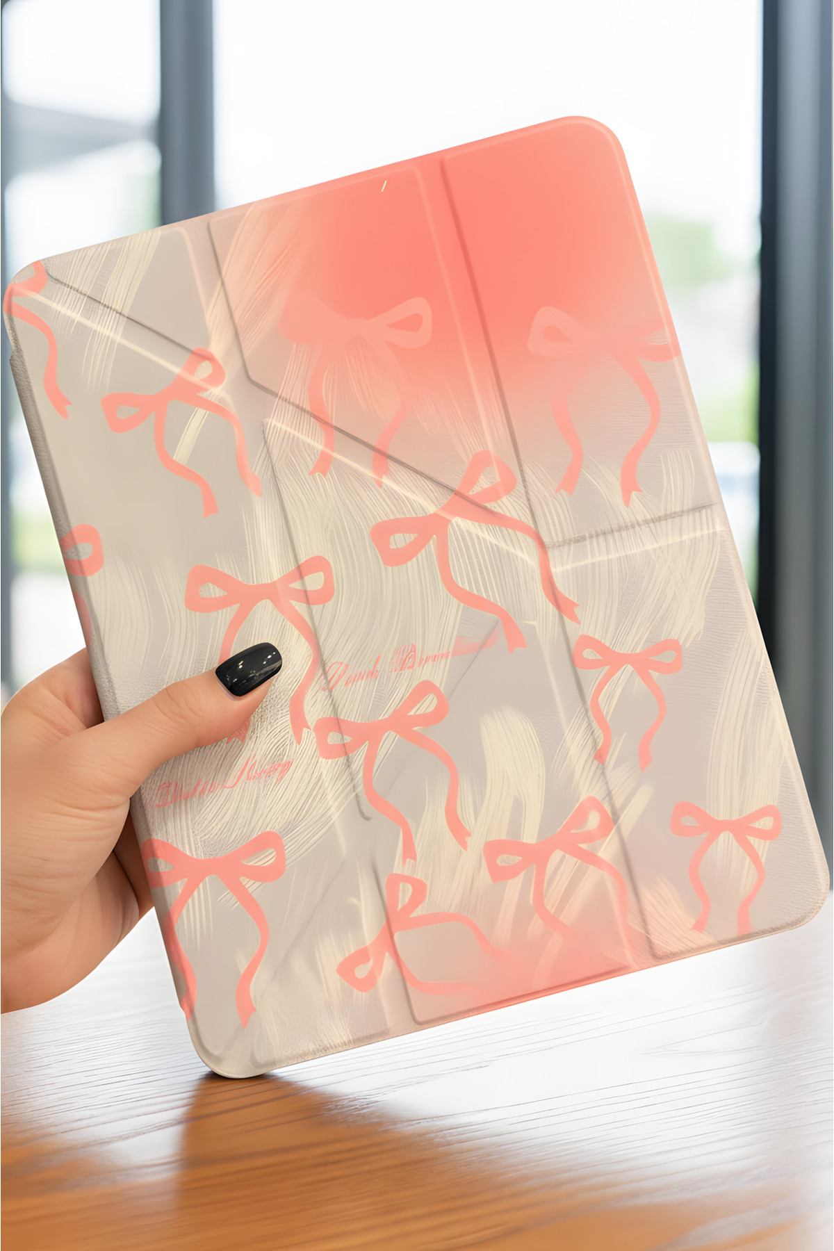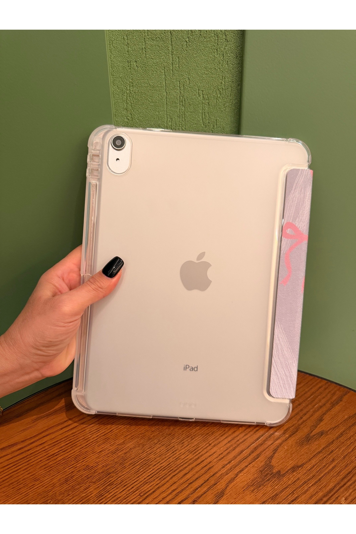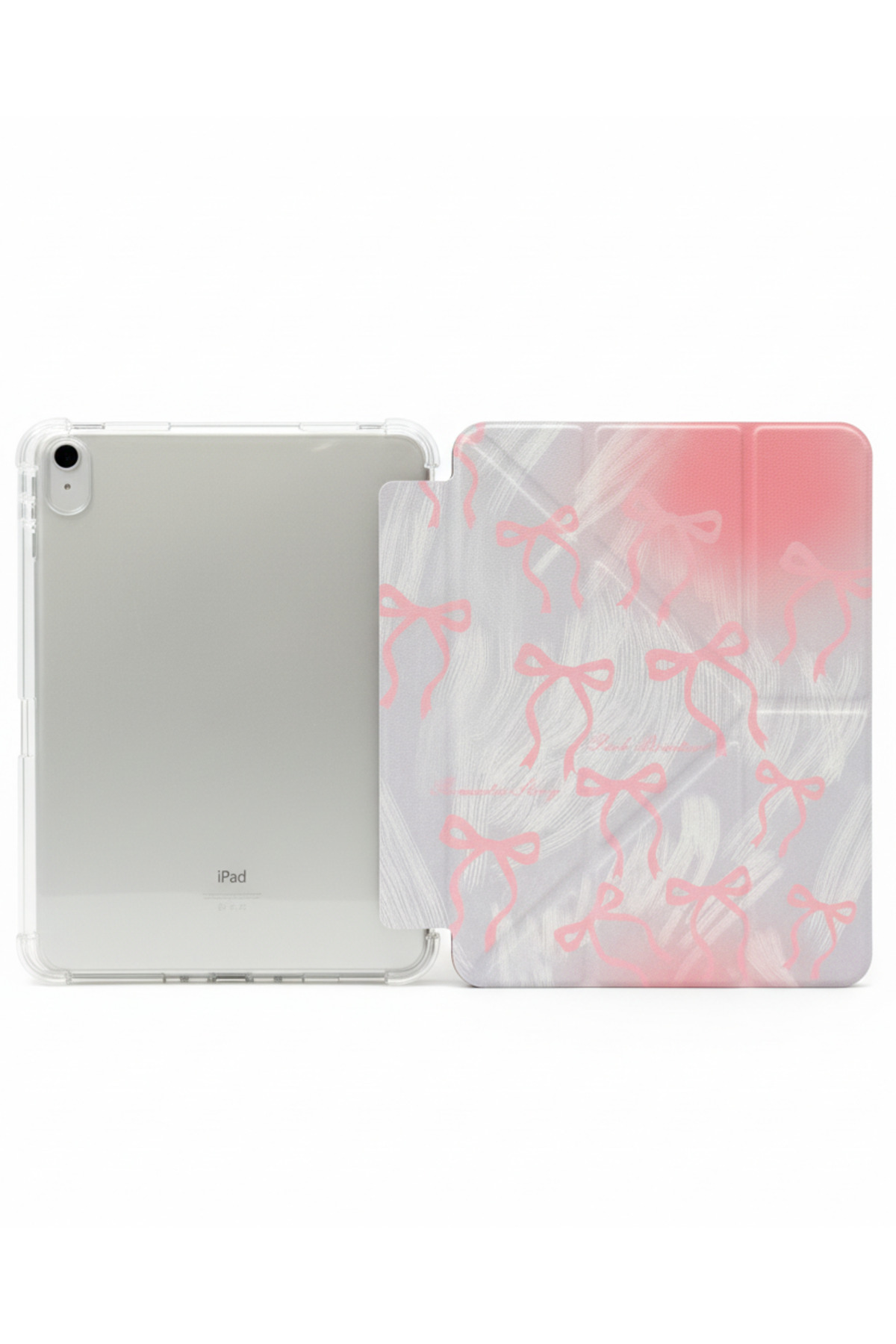 Tabletinizde "Coquette" esintisi! iPad 10. Nesil 10.9 inç ve iPad 11 A16 (2025) modelleriyle tam uyumlu bu kılıf, zarif pembe kurdele desenlerini şeffaf arka yüzeyin modernliğiyle buluşturuyor.
