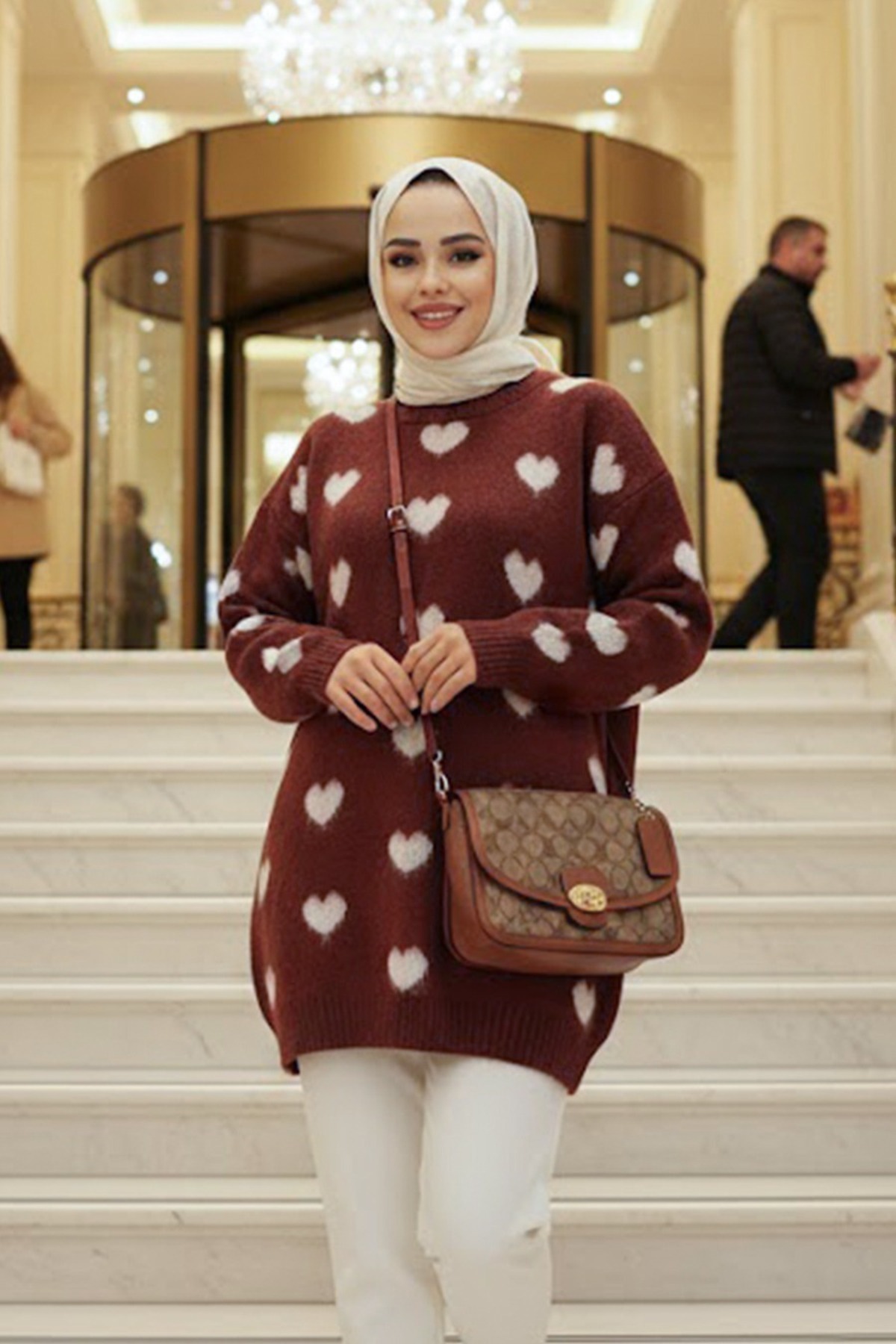 Kalp Desenli Füme Tesettür Triko Kazak Tunik 8688FU