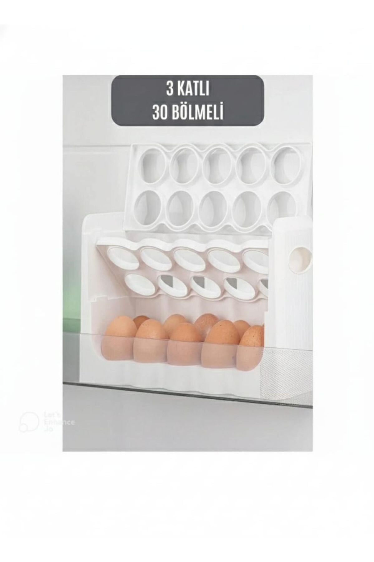 Katkat Yumurtalık, Yumurta Organizeri Buzdolabı Yumurtalık Düzenleyici 30'lu 3 Katlı Raf Yumurtalık