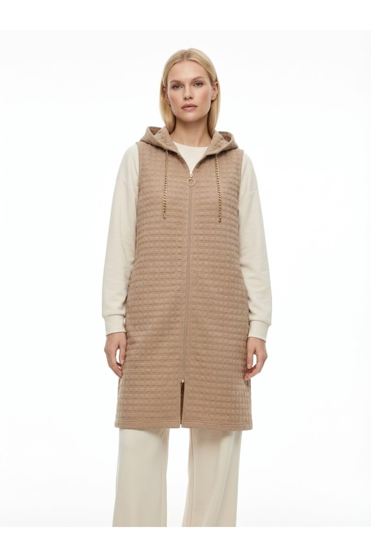 • Fermuar Detaylı Kapüşonlu Kapitone Yelek