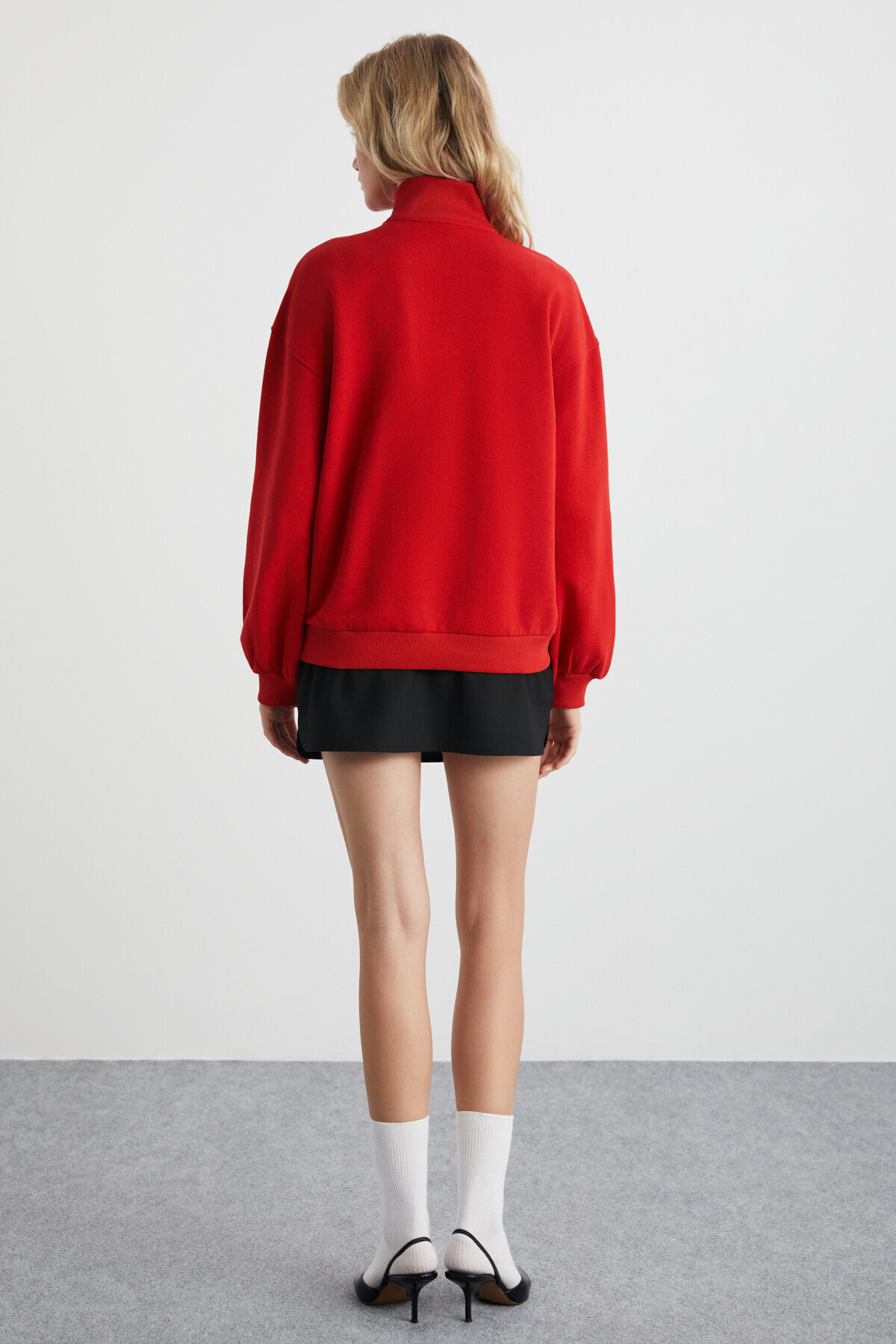 - Canlı kırmızısıyla dikkat çeken baskılı deseni, stilinizi öne çıkarır ve enerjik görünmenizi sağlar.