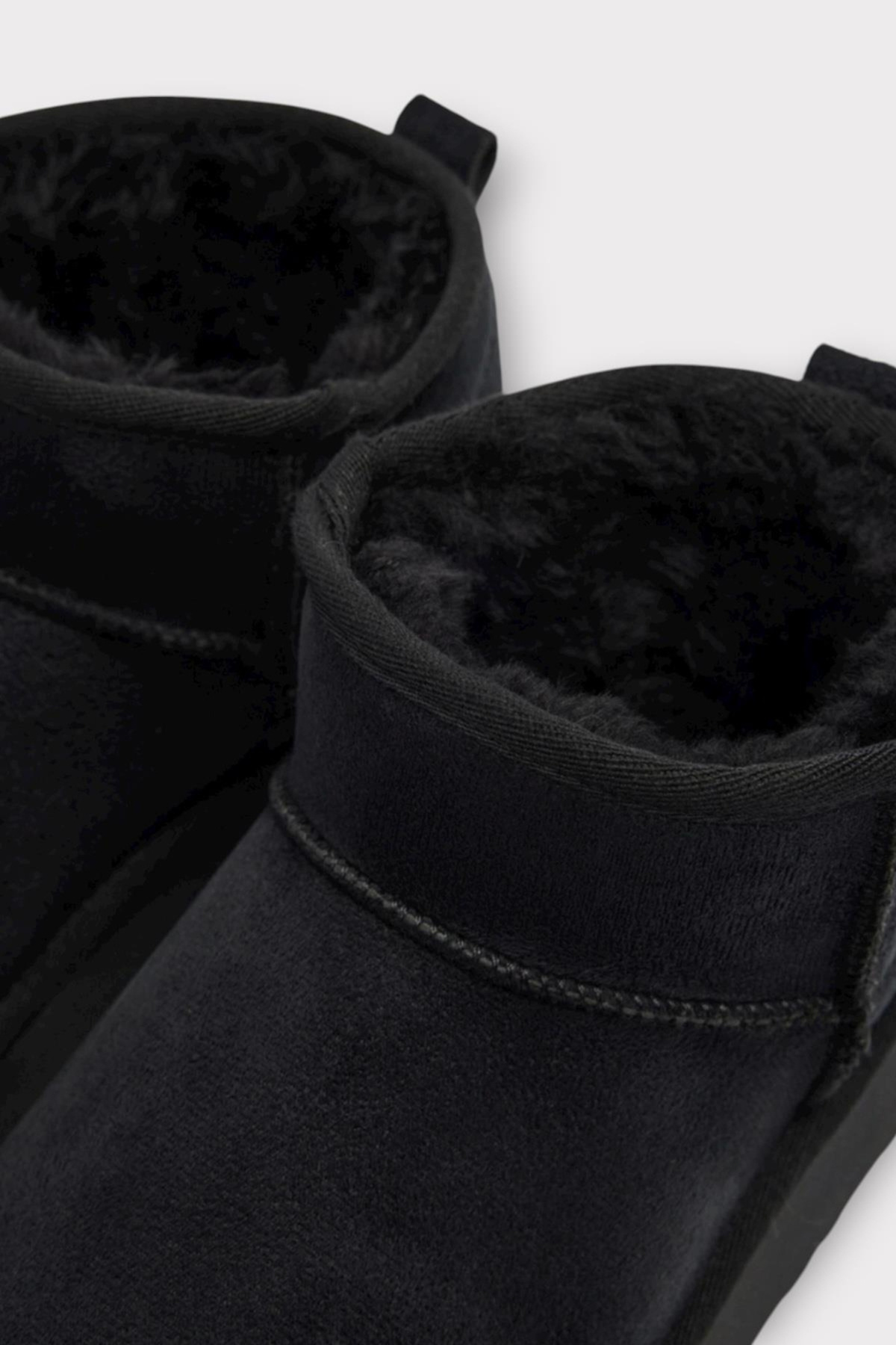 - Siyah süet kar botu, kış aylarında ayaklarınızı sıcak tutarken şık bir görünüm sunar.