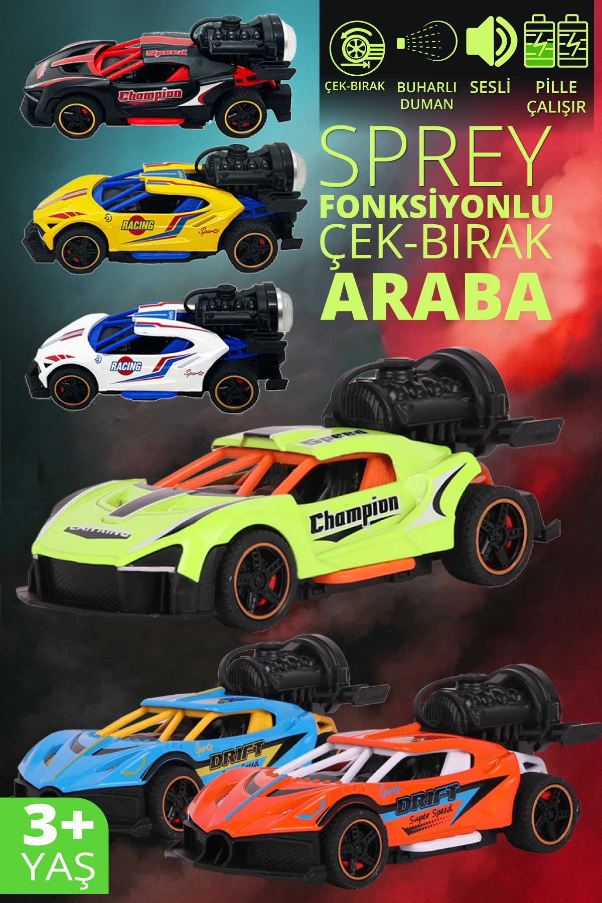 Buhar Atan Işıklı Sesli Spray Fonksiyonlu Çek Bırak Pilli Metal Oyuncak Araba Çocukların oyun saatlerini heyecanlandıracak Spray Fonksiyonlu Pilli Metal Çek Bırak Araba, gerçekçi ses, ışık ve duman efektleriyle ultra eğlenceli bir deneyim sunar.