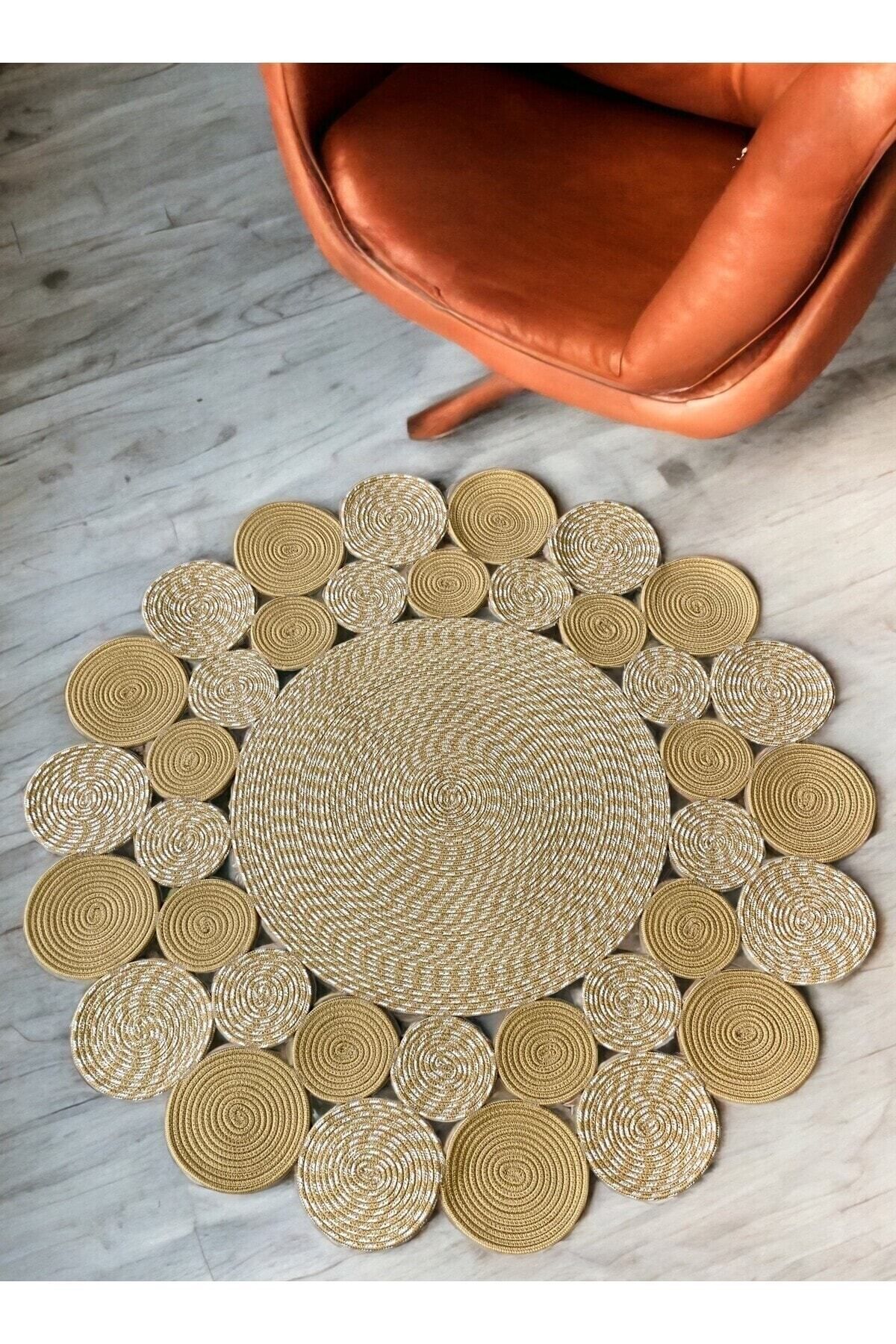 Doğal ve dayanıklı jüt malzemesinden özel olarak örülmüş bir kilimdir.