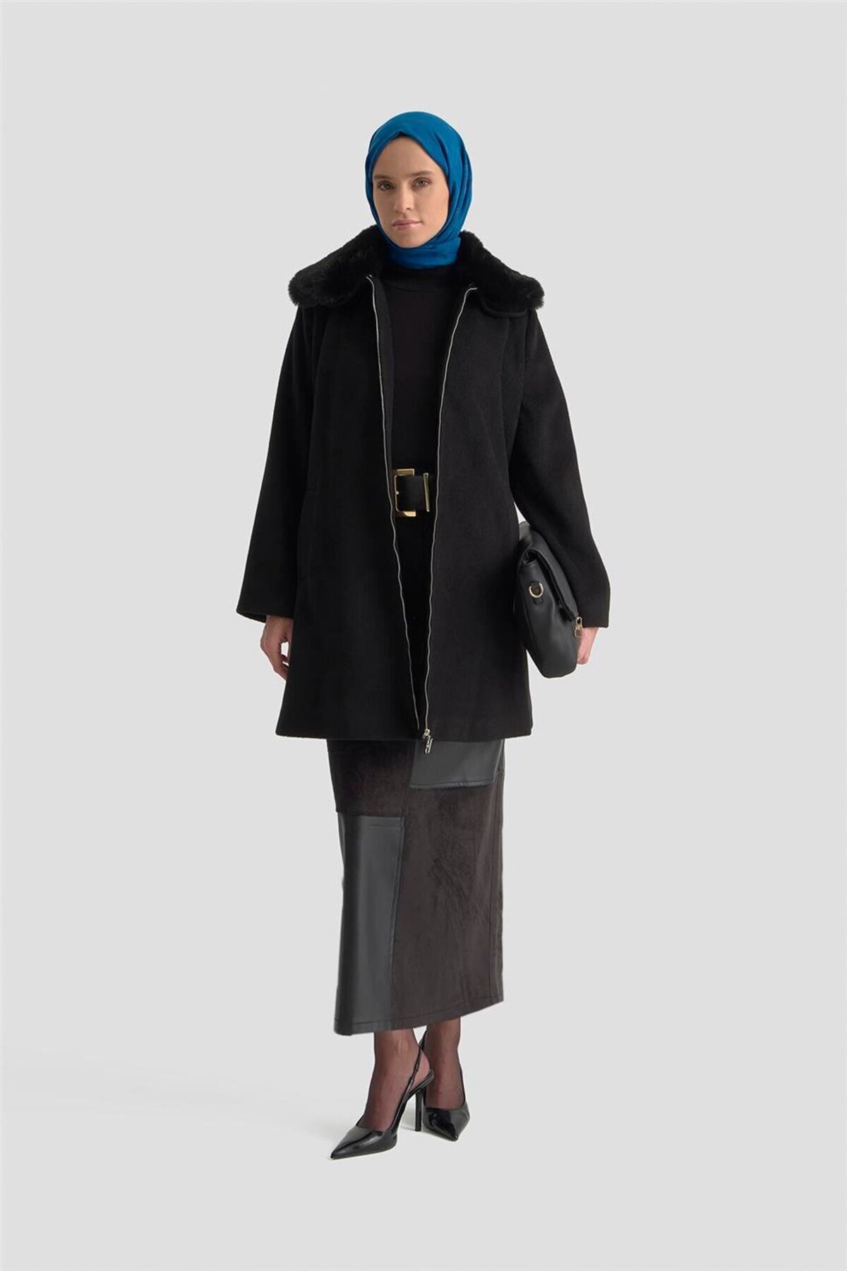 Kürk Yakalı Kaban 25KD1707 Siyah
