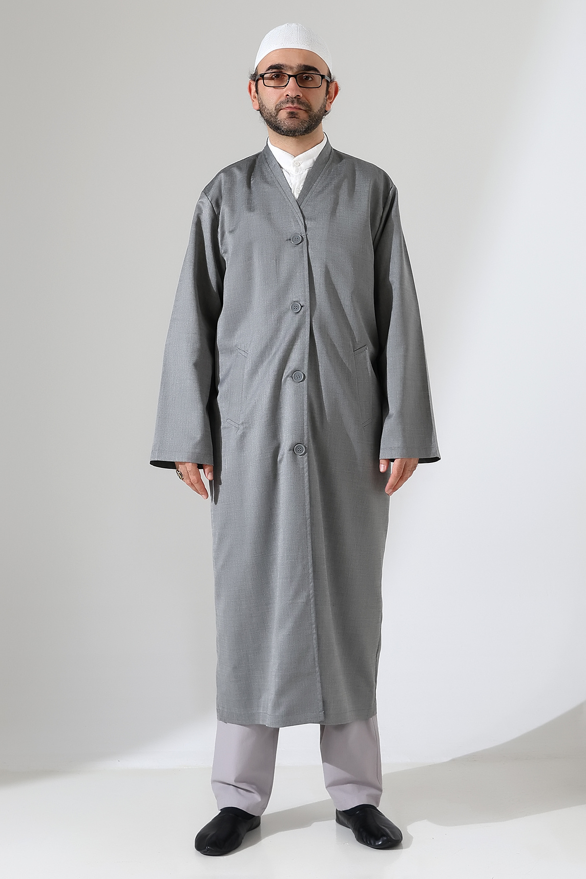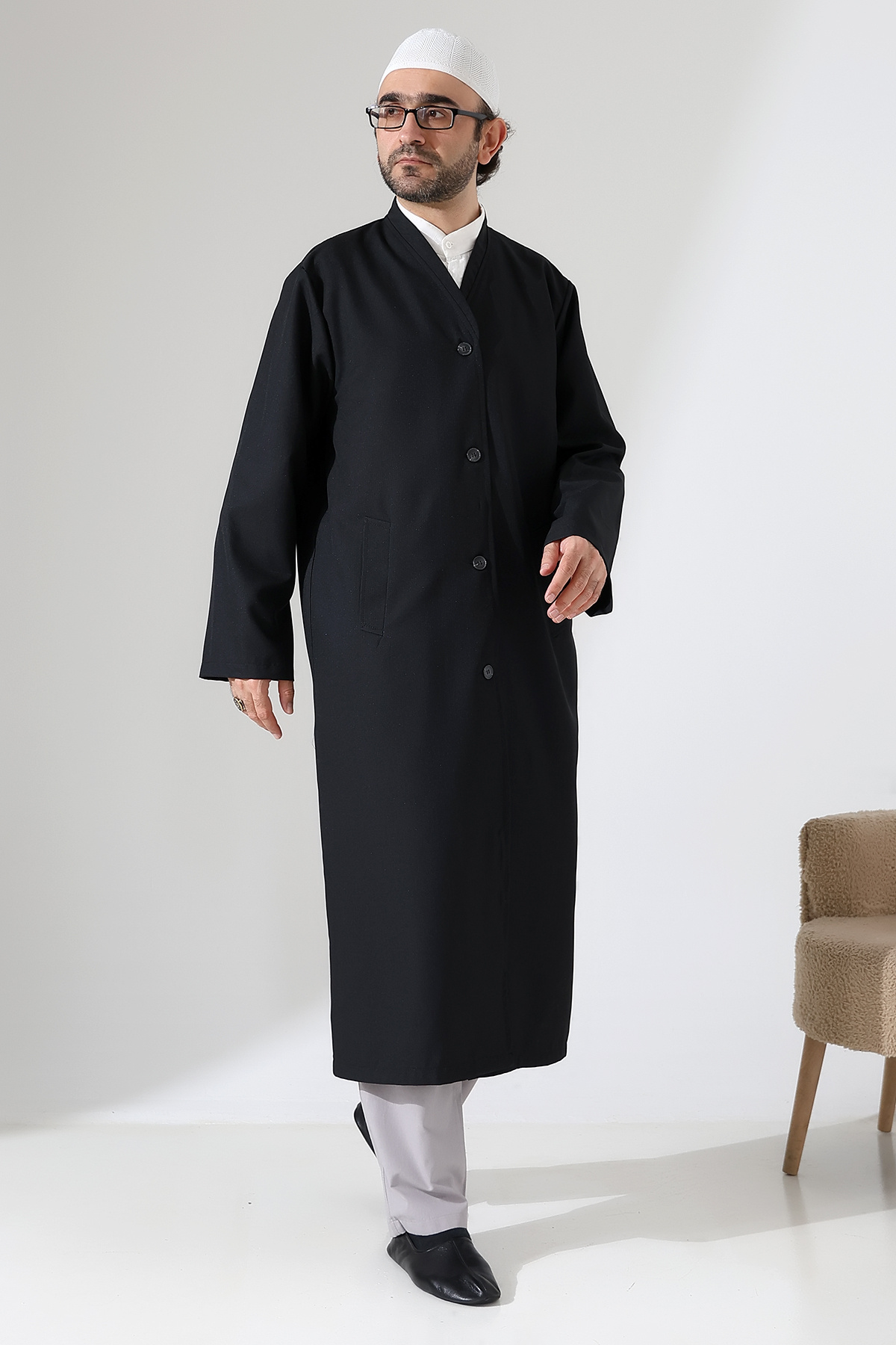 Yarım Astarlı Düğmeli Cepli Buhara Yaka Erkek Cübbe - Siyah