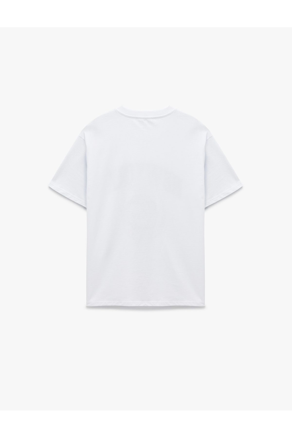 Kısa Kollu Bisiklet Yaka Pamuklu Oversize Baskılı Tişört