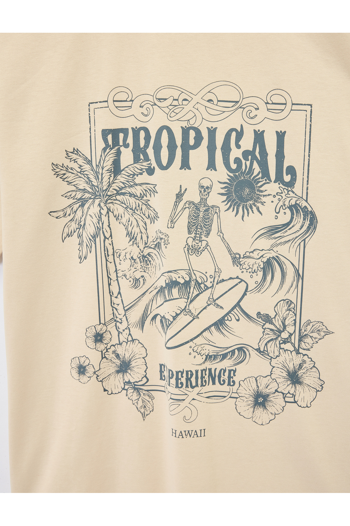 Pamuklu Kısa Kollu Bisiklet Yaka Kuru Kafa Baskılı Oversize Tişört