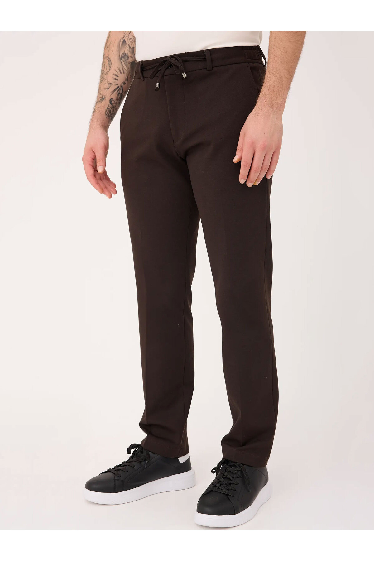 Kahverengi Jogger Comfortable Esnek İpli İnterlock Örme Regular Fit Pantolon