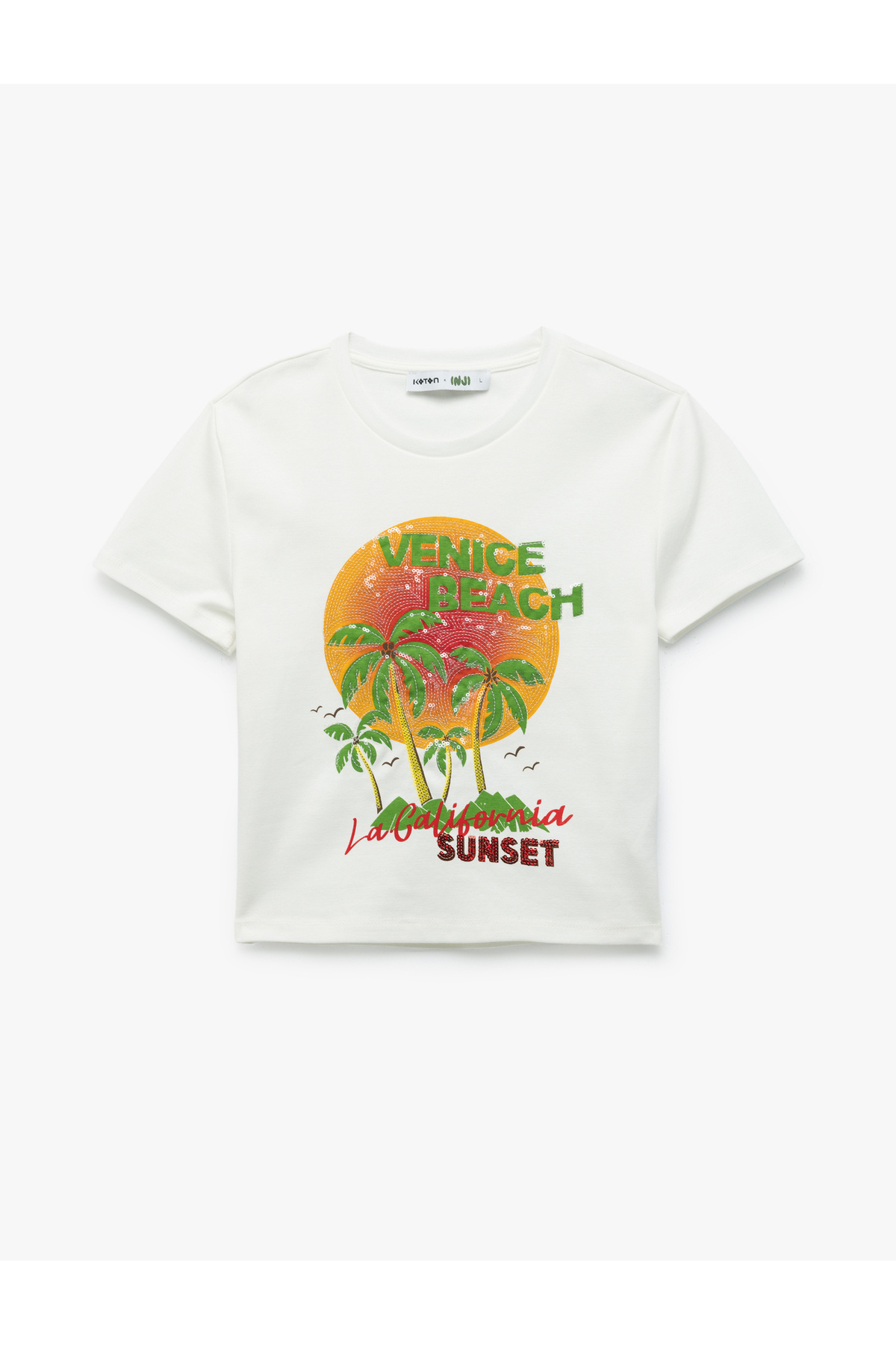 Pul Detaylı Bisiklet Yaka Kısa Kollu Crop Tişört