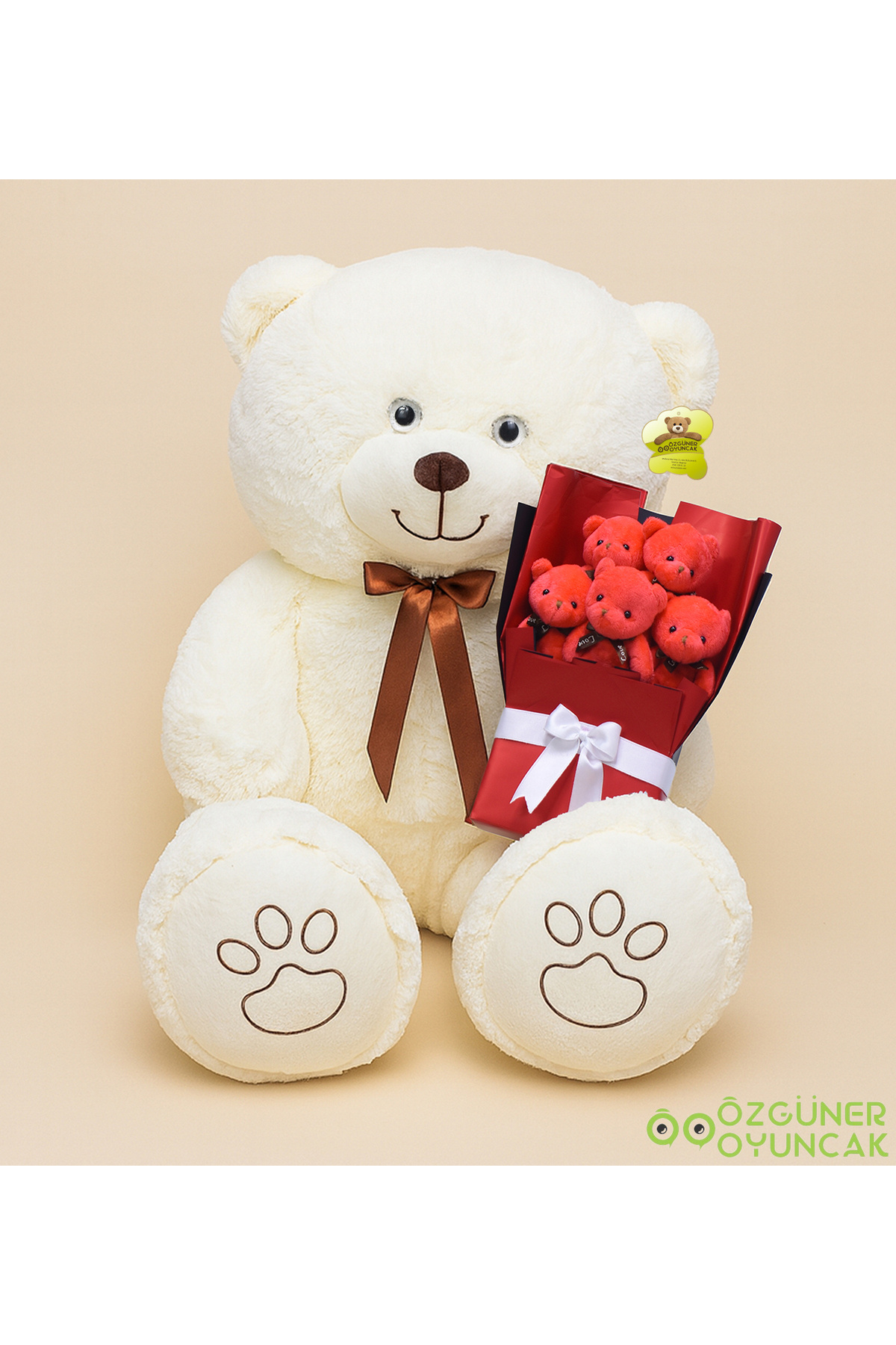 Sevgiliye Romantik Hediye Seti – Büyük 120 cm Peluş Ayı ve Peluş Ayıcık Buketi