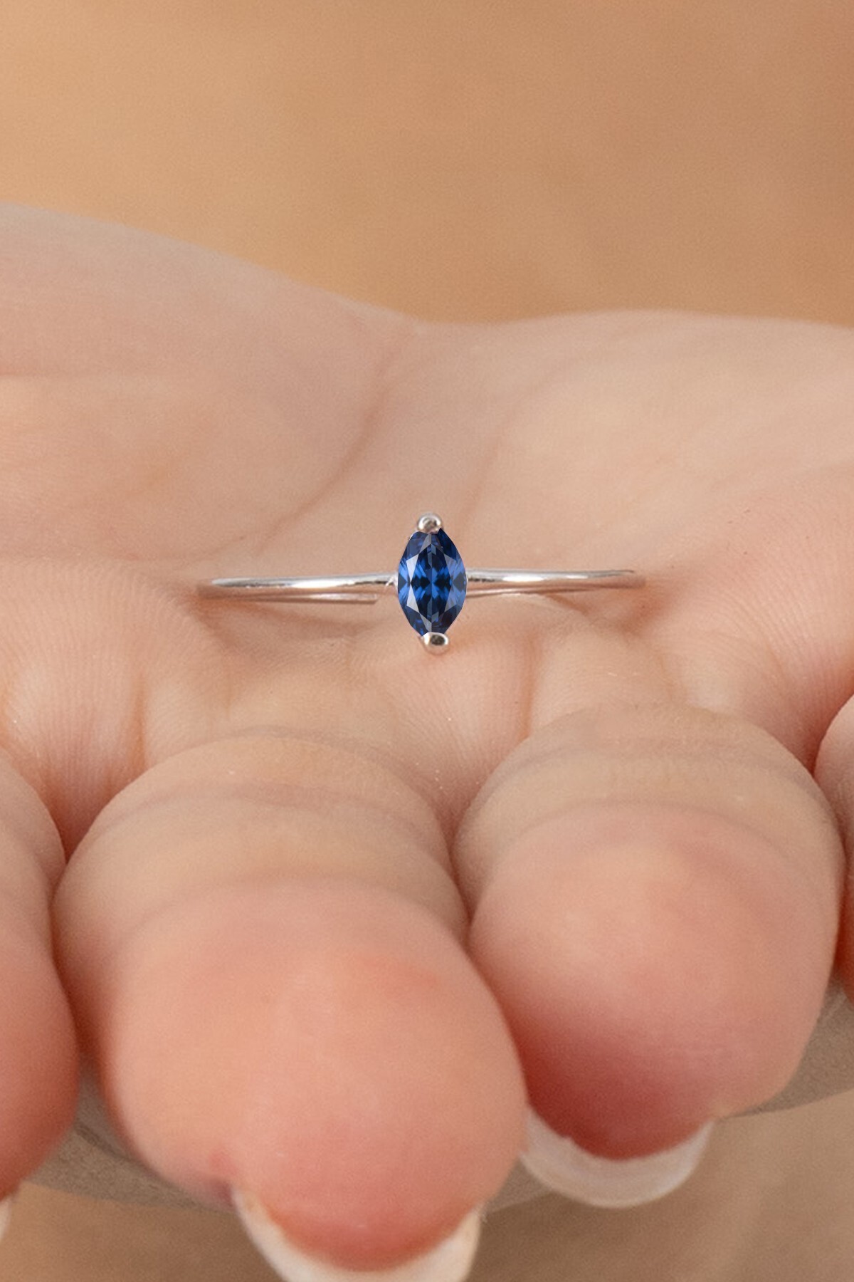 925 ayar gümüş rodyumlu markiz kesim lacivert ayarlamalı yüzük.