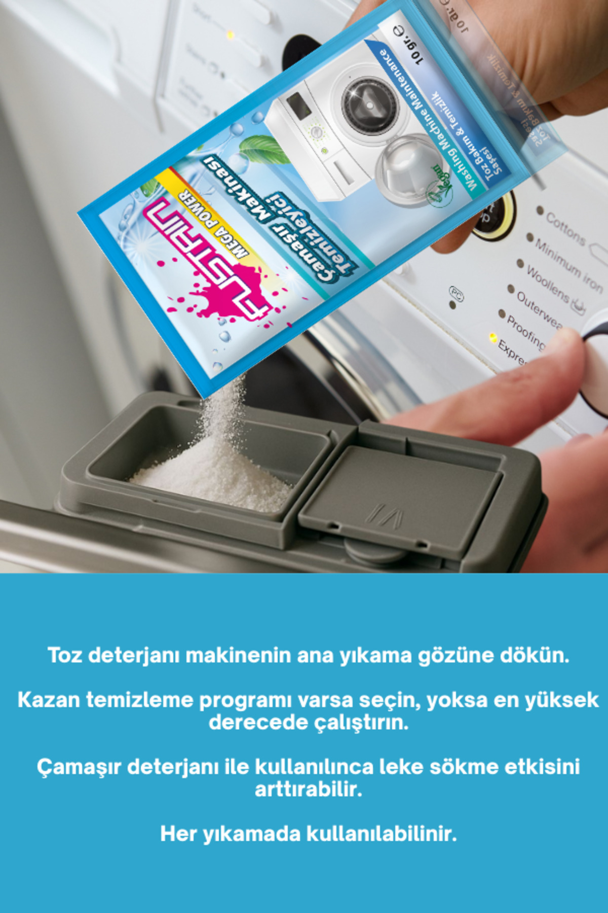 ÇAMAŞIR MAKİNESİ TEMİZLEYİCİ TOZ BAKIM SAŞESİ 18 ADET SAŞE