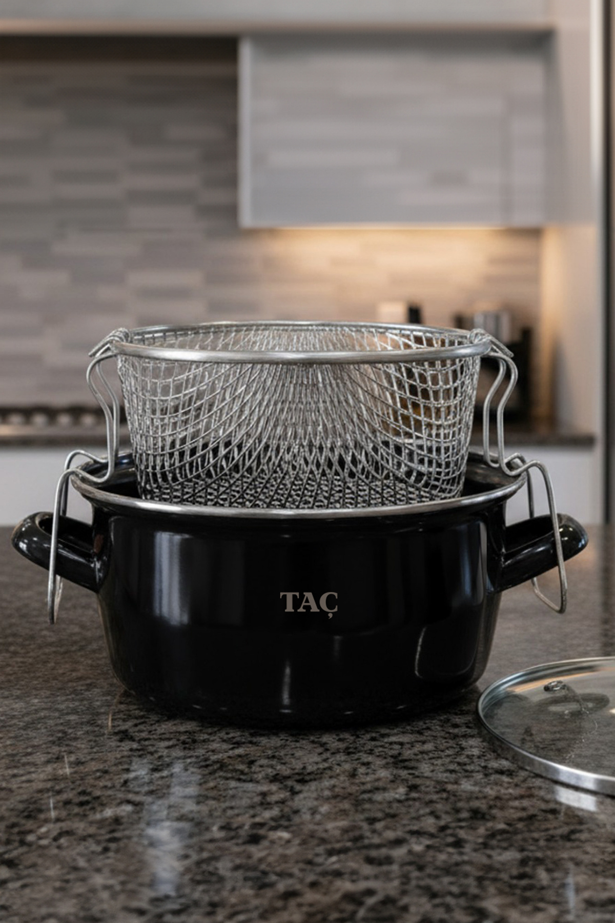 Taç Cips Cıtır 24 Cm Emaye Siyah Kızartma Tenceresi