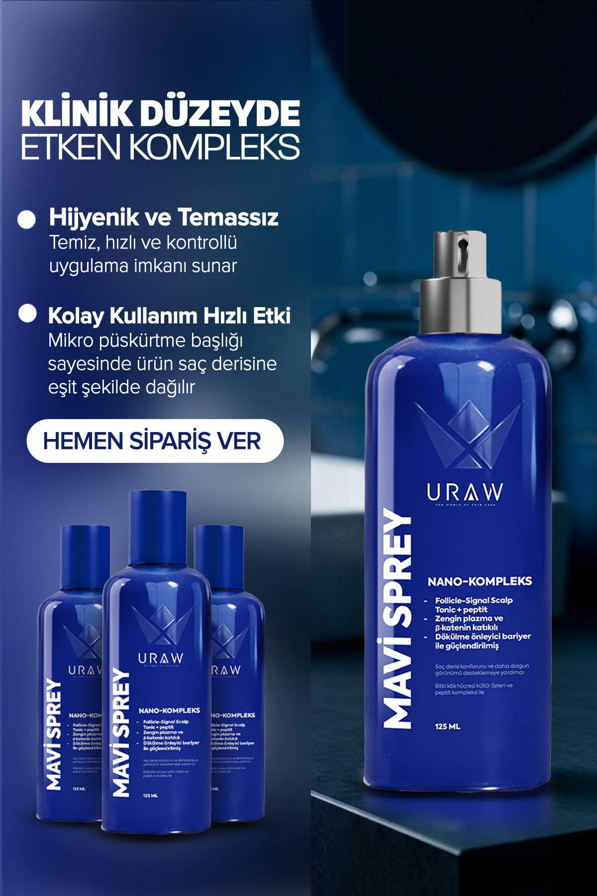 Mavi Sprey 3'lü Set - Saç Kökü Aktivasyonunu Destekleyen Gelişmiş Kompleks