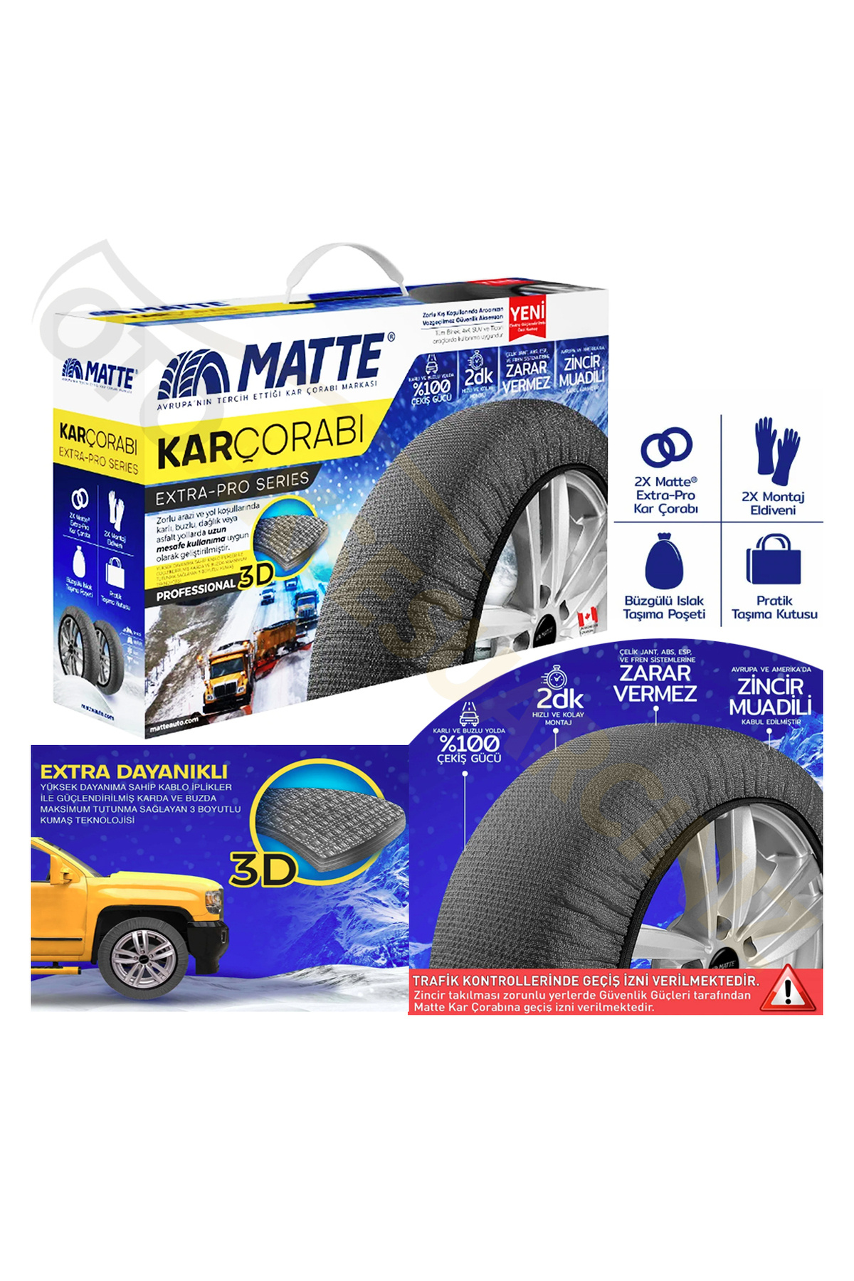 Ürün AçıklamasıKarlı ve Buzlu yol koşullarında eşsiz yol tutuşu ve direksiyon hakimiyeti sağlayan Matte Kar Extra-Pro Kar Çorabı, yola tutunma özelliği ve dayanıklılığı son derece yüksek ileri teknoloji tekstil ürünlerinden imal edilmiştir.