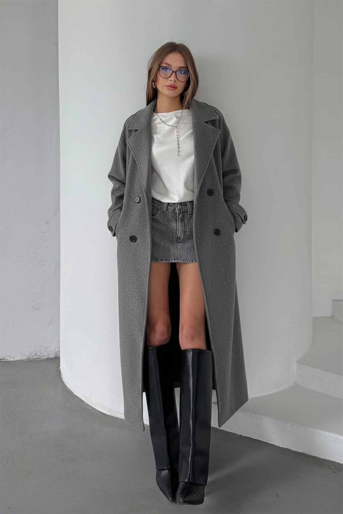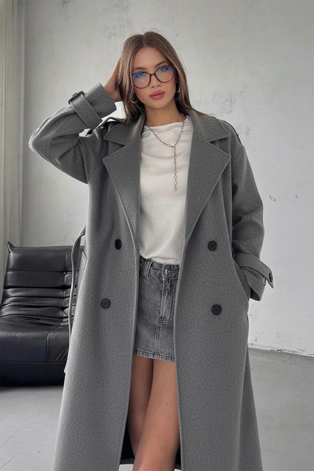 - Dokuma kumaş tipi sayesinde formunu koruyan Laura Gri Kuşaklı Kaban, dayanıklılık açısından da üst düzey sergiliyor.