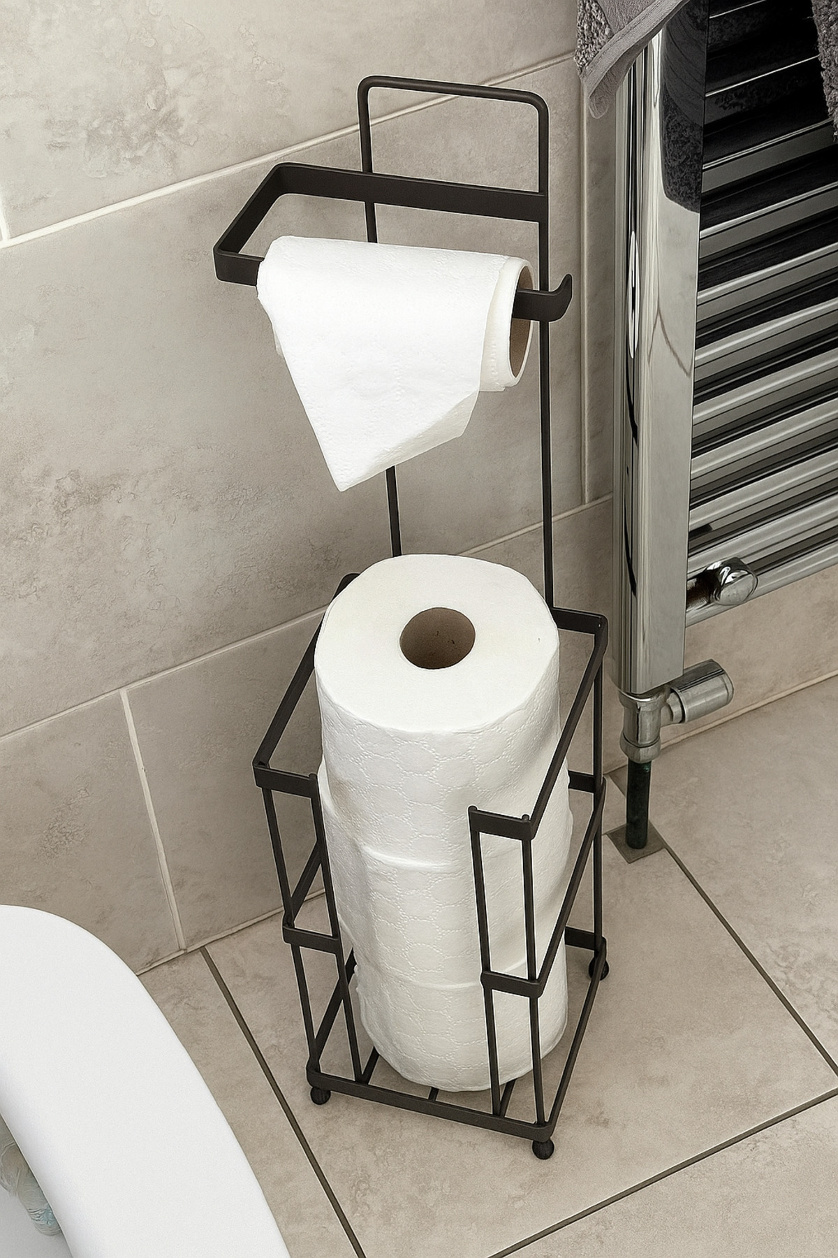 Premium seri lamalı tuvalet kağıtlığı özel işlemlerden geçirilerek elektrostatik mat siyah toz boyayla kaplanmıştır ve paslanmaz özelliğe sahiptir.