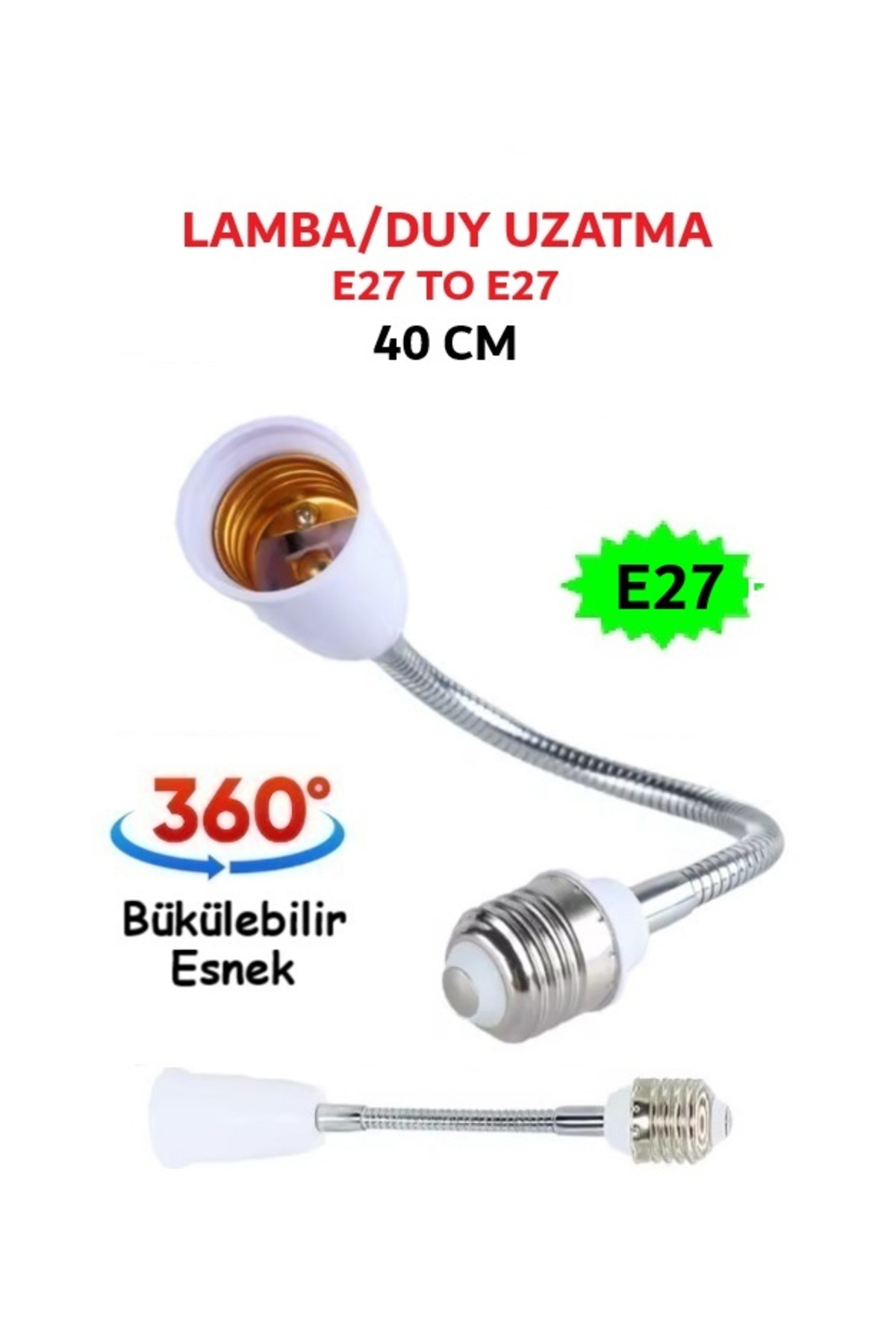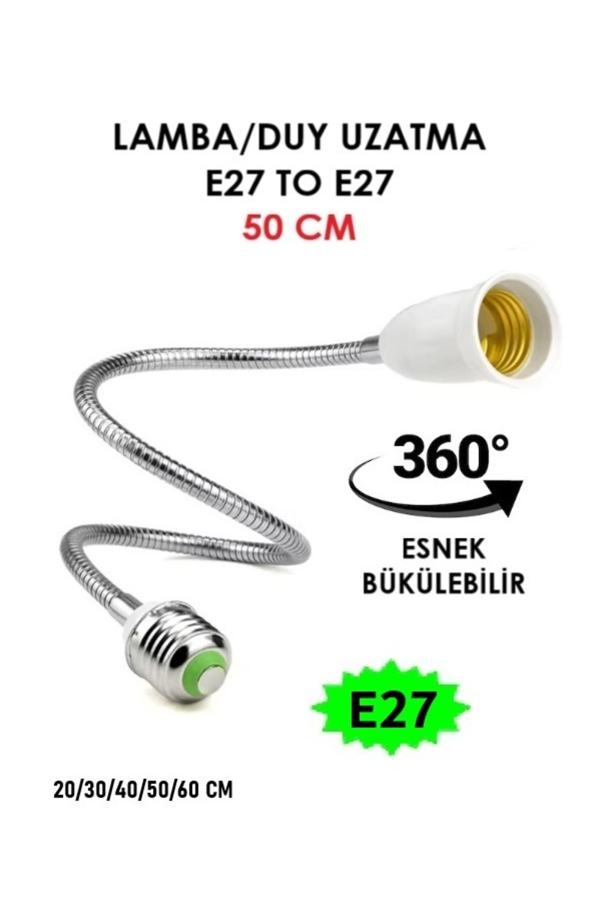 Lamba / Duy Uzatma 20 Cm Metal Esnek Bükülebilir 360 Derece E27 To E27