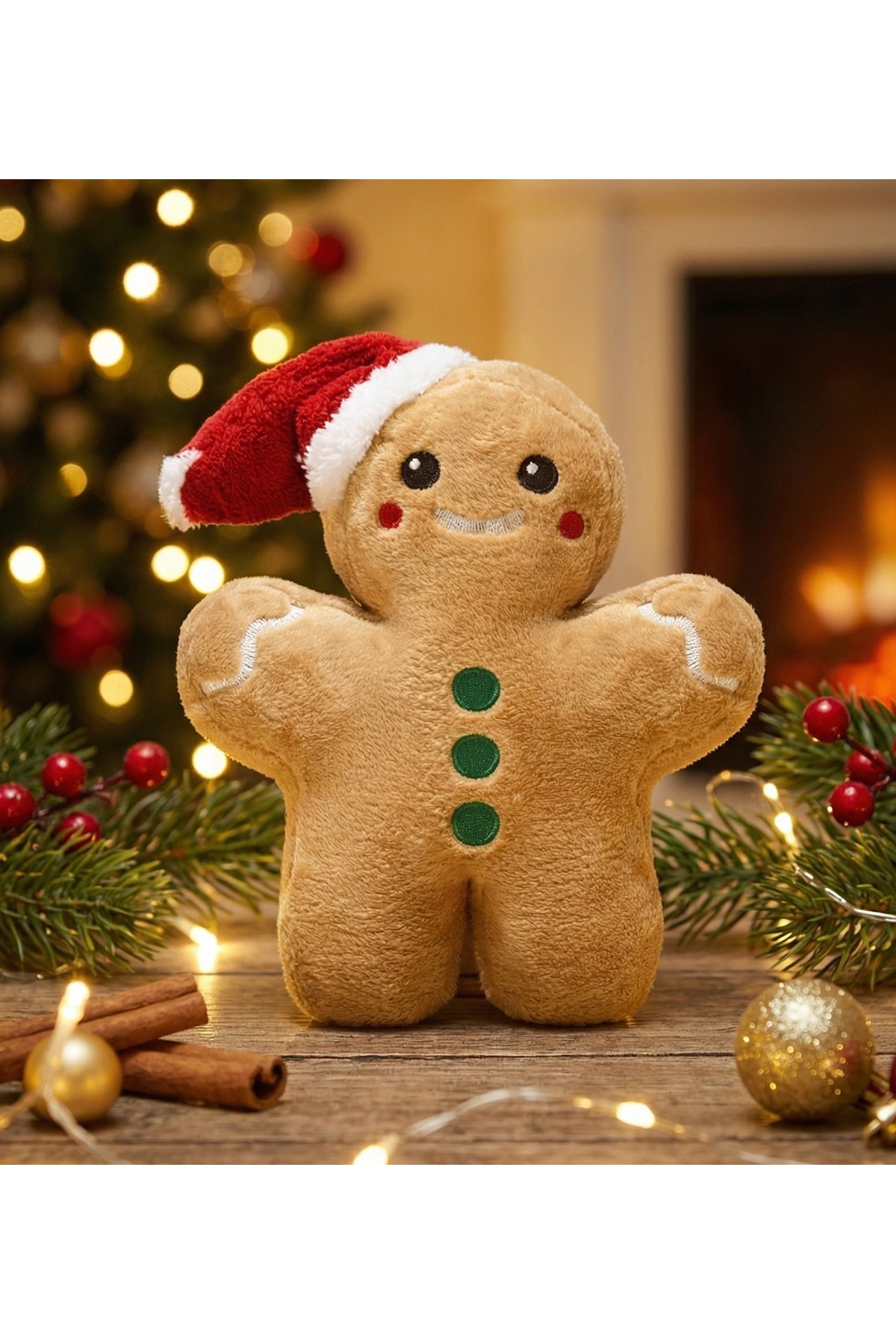 Noel Temalı Kurabiye Adam Peluş Yastık – 30 cm Şapkalı Yılbaşı Kırlenti