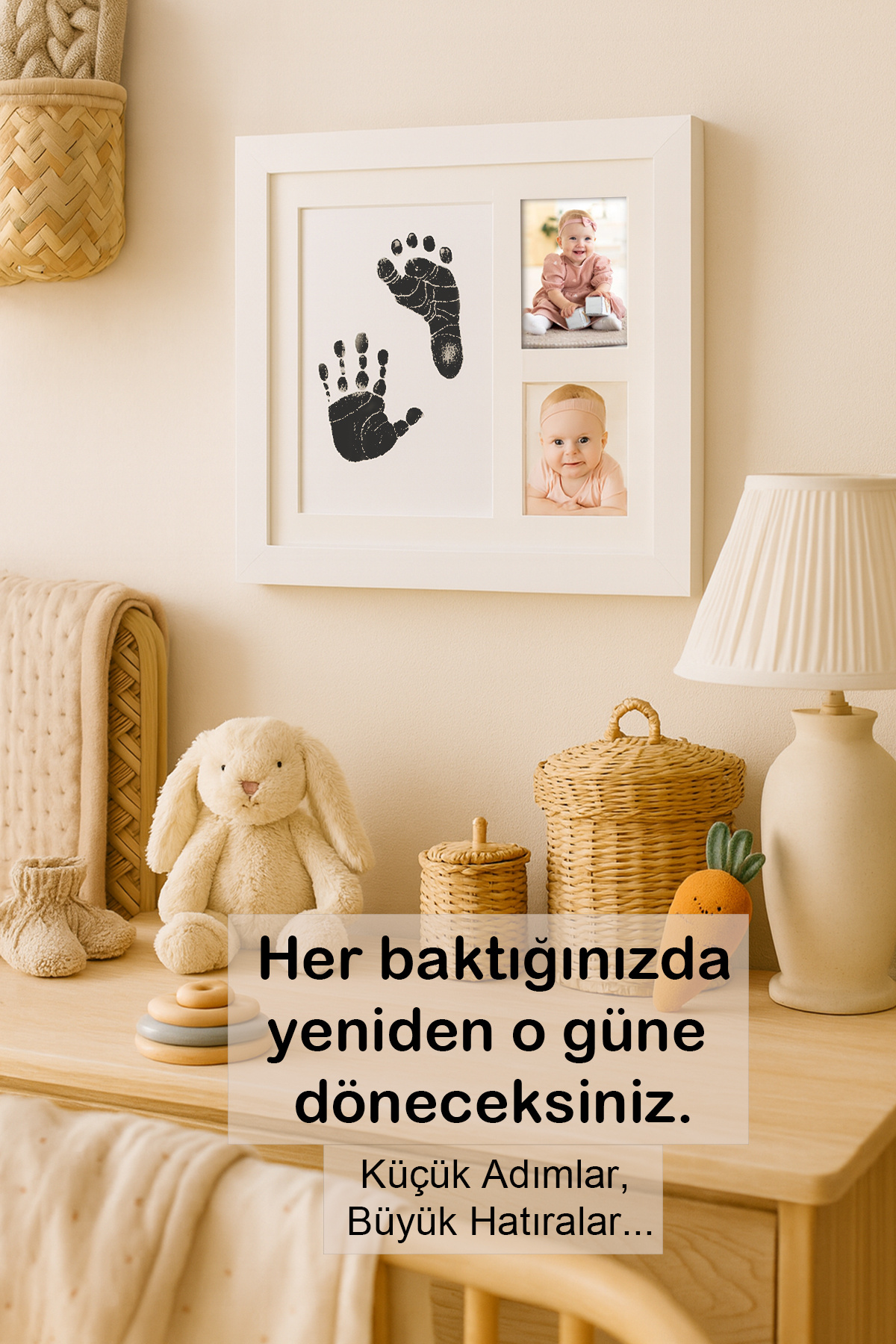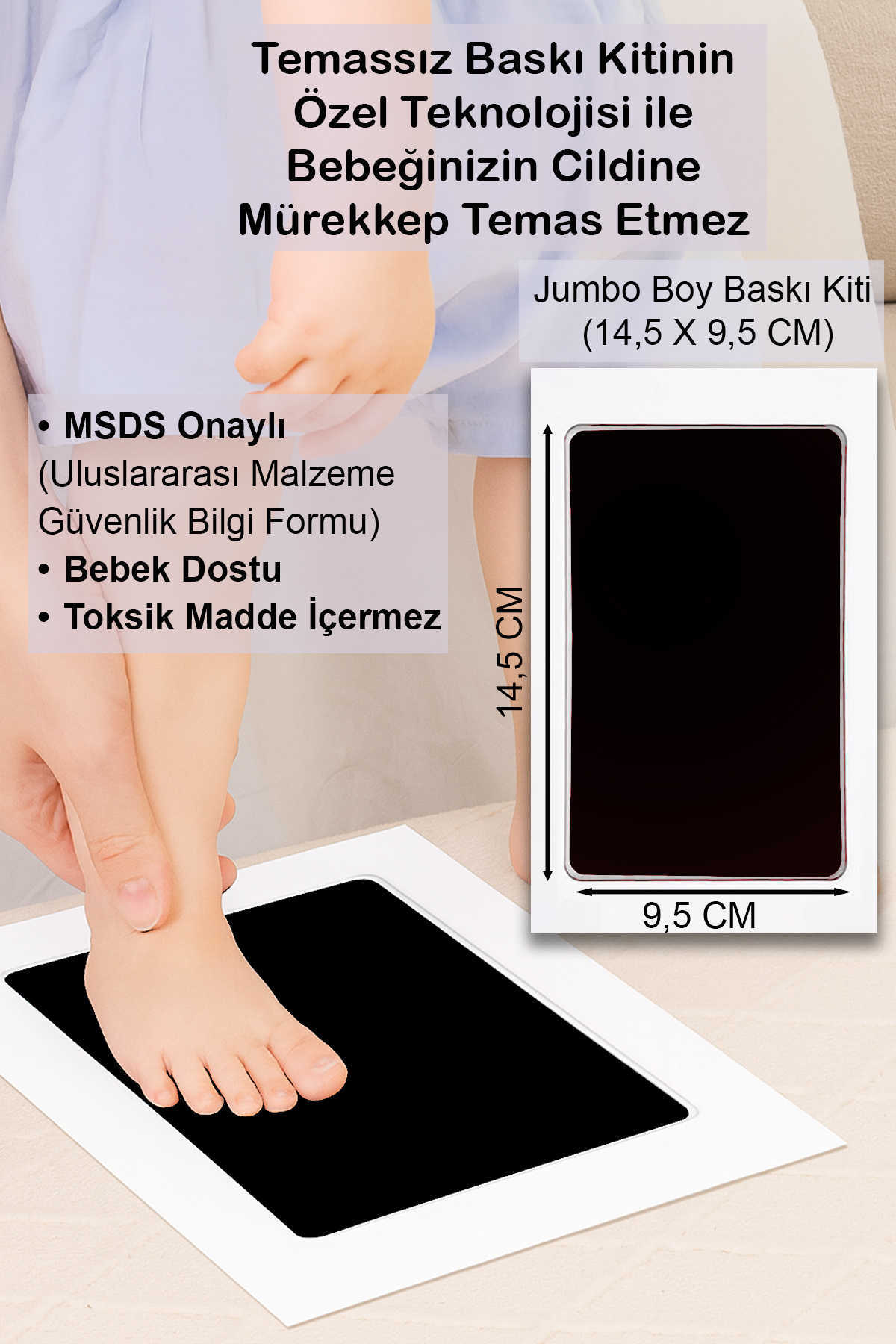 Bebek El Ayak İzi Seti, Temassız Mürekkep Baskı Kiti Jumbo Boy ve Yenidoğan Hediye Anı Çerçevesi