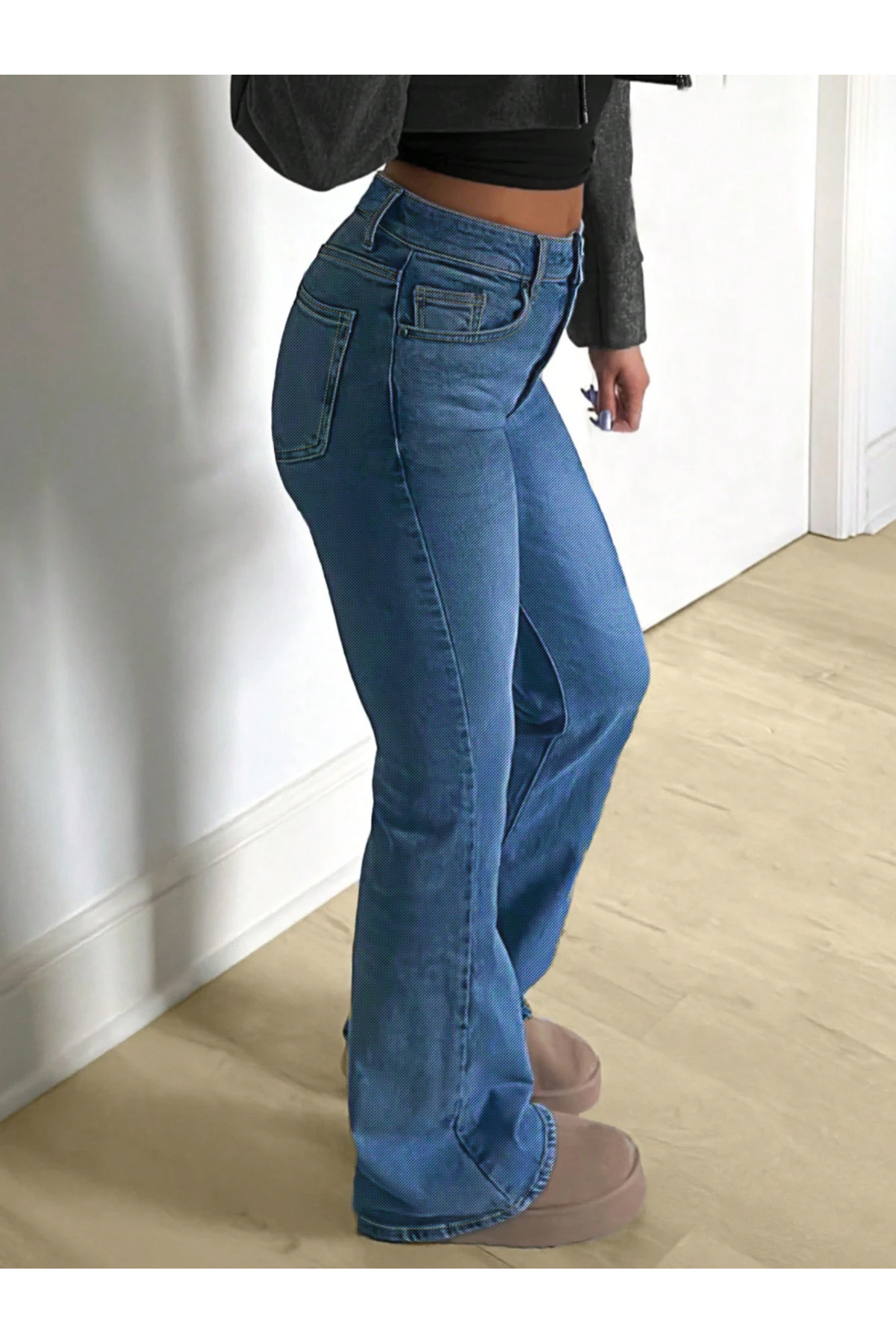 Women's Light Blue Stretch Flared High Waist Slim Fit Jeans Street All Season