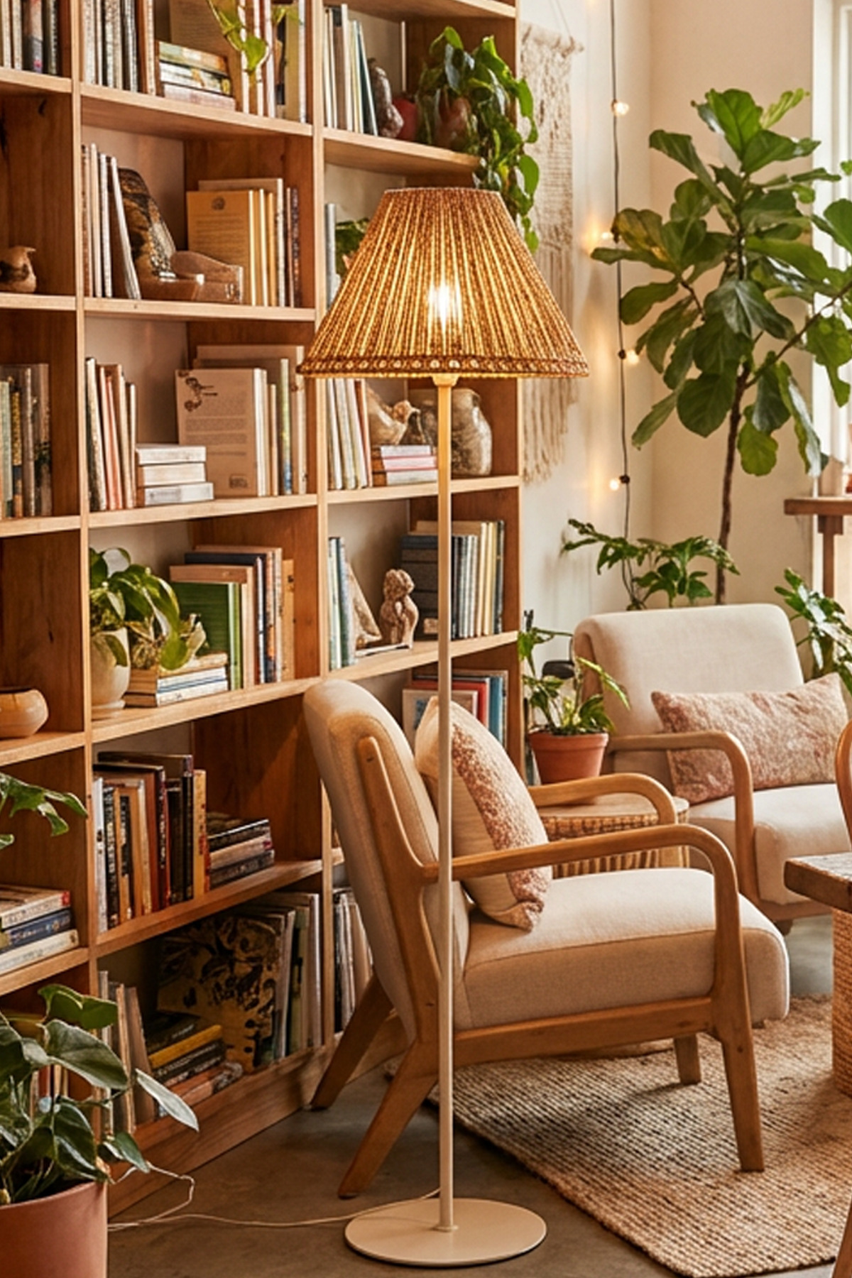 Mono Krem Metal Ayaklı Doğal İp Başlıklı Lambader - 145cm Bohem Rustik Salon ve Köşe Aydınlatması